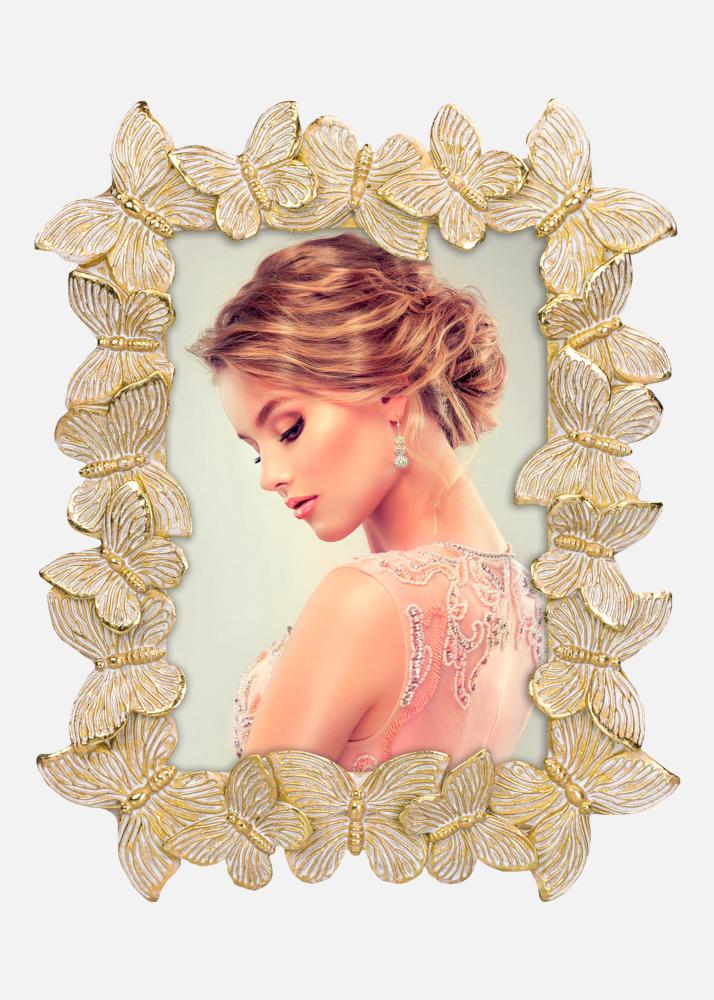 Descubra a beleza encantadora do nosso quadro de retrato de 13x18 cm, uma verdadeira peça de destaque para a sua casa. Esta moldura de fotos única é decorada com um perfil de moldura detalhado, com borboletas douradas e brancas, proporcionando um toque divertido e elegante às suas fotos favoritas.