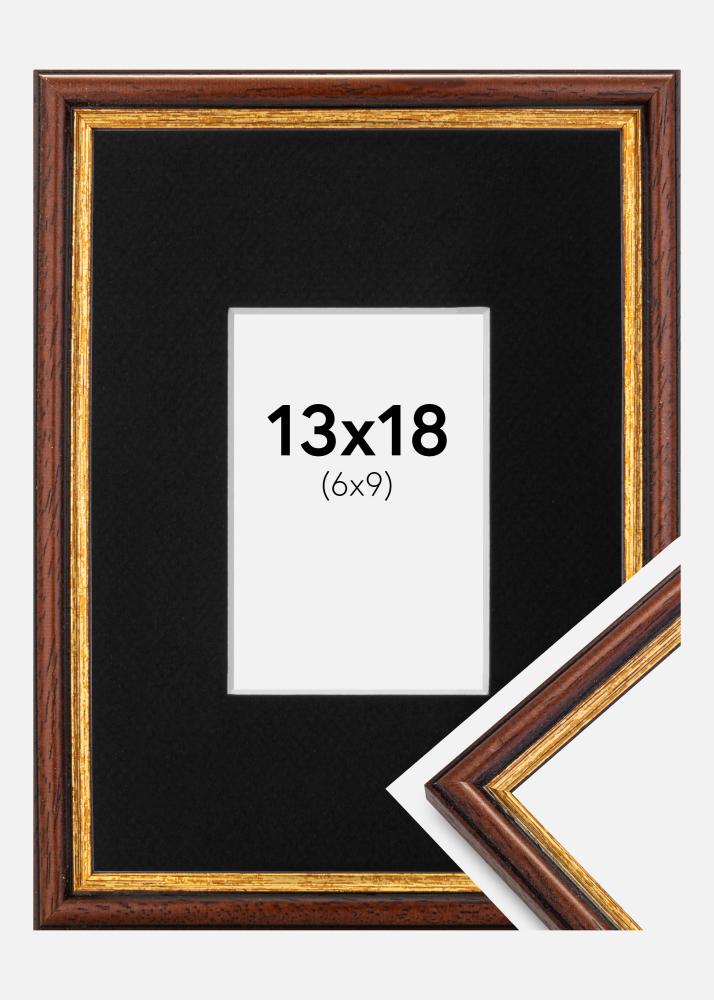 Moldura Horndal Castanho 13x18 cm - Passe-partout Preto 7x10 cm