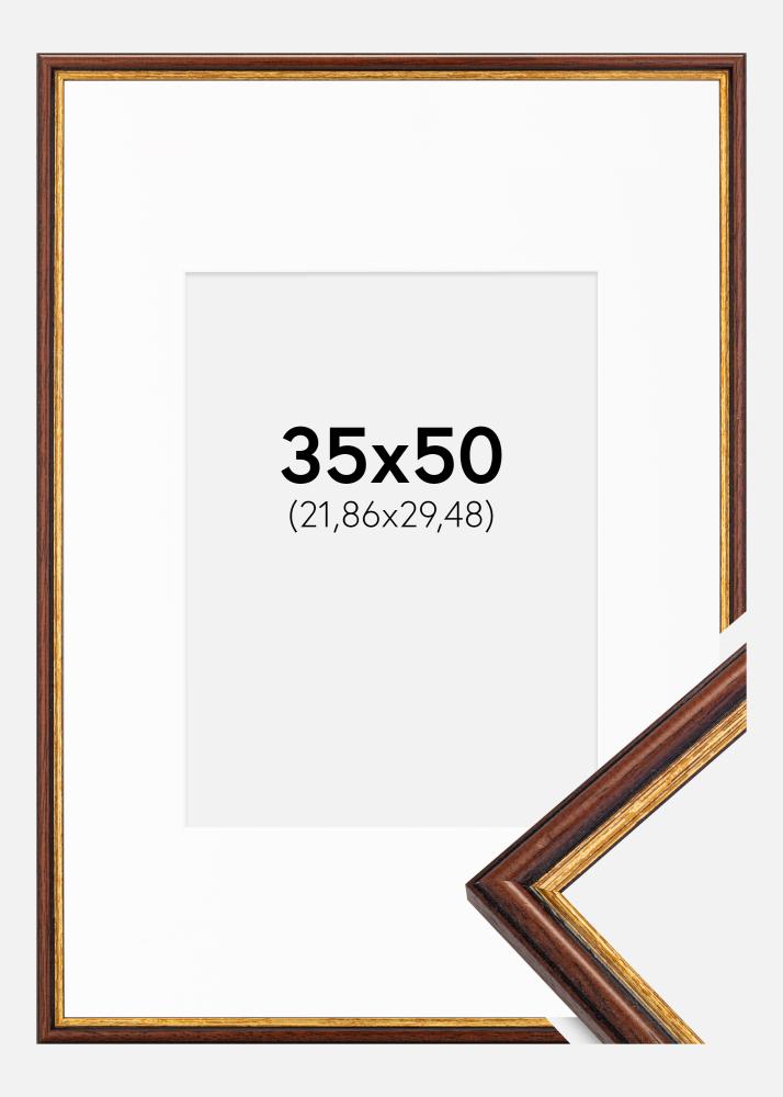 Moldura Horndal Castanho 35x50 cm - Passe-partout Branco 9x12 inches