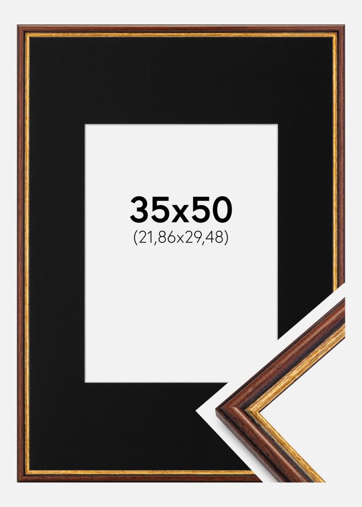 Moldura Horndal Castanho 35x50 cm - Passe-partout Preto 9x12 inches