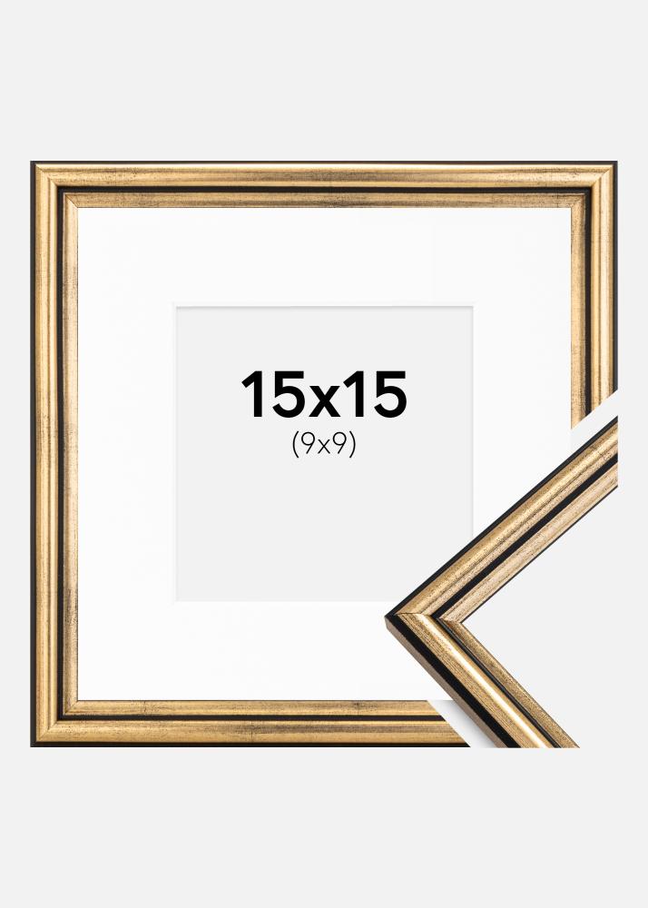 Moldura Horndal Dourado 15x15 cm - Passe-partout Branco 10x10 cm