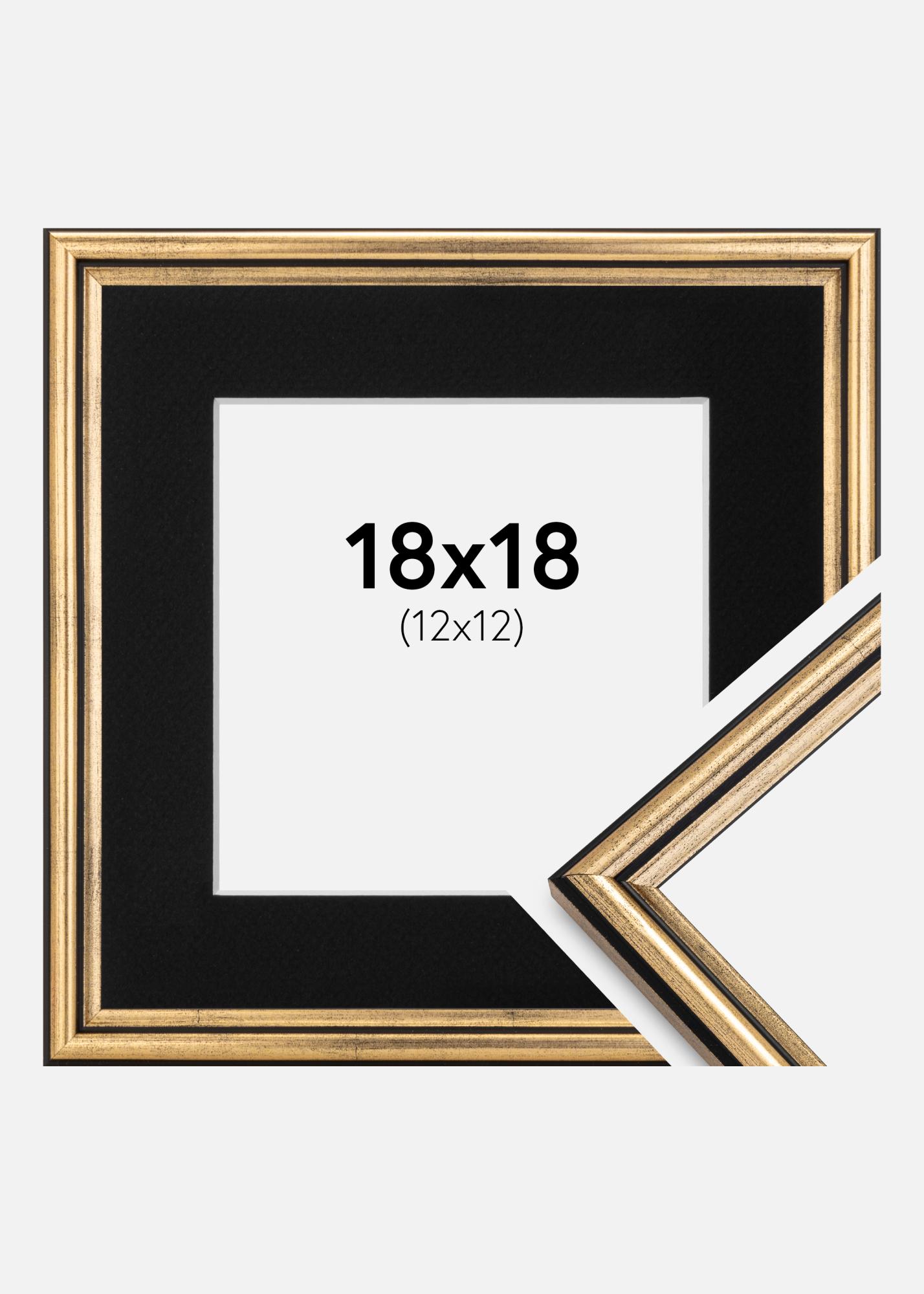 Moldura Horndal Dourado 18x18 cm - Passe-partout Preto 13x13 cm