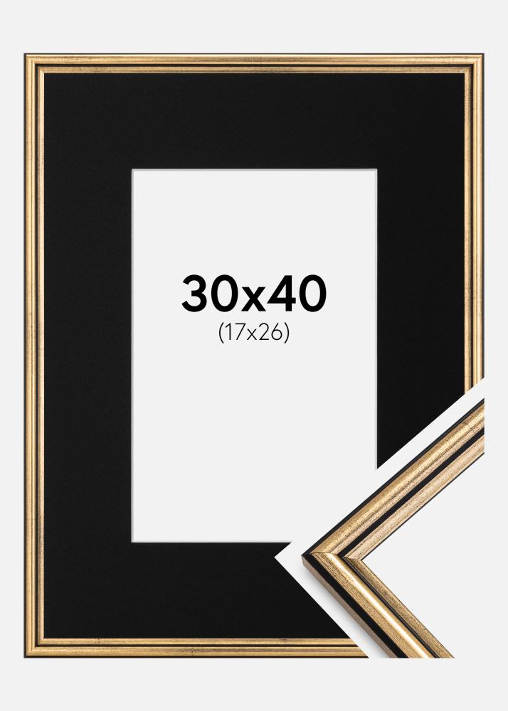 Moldura Horndal Dourado 30x40 cm - Passe-partout Preto 18x27 cm
