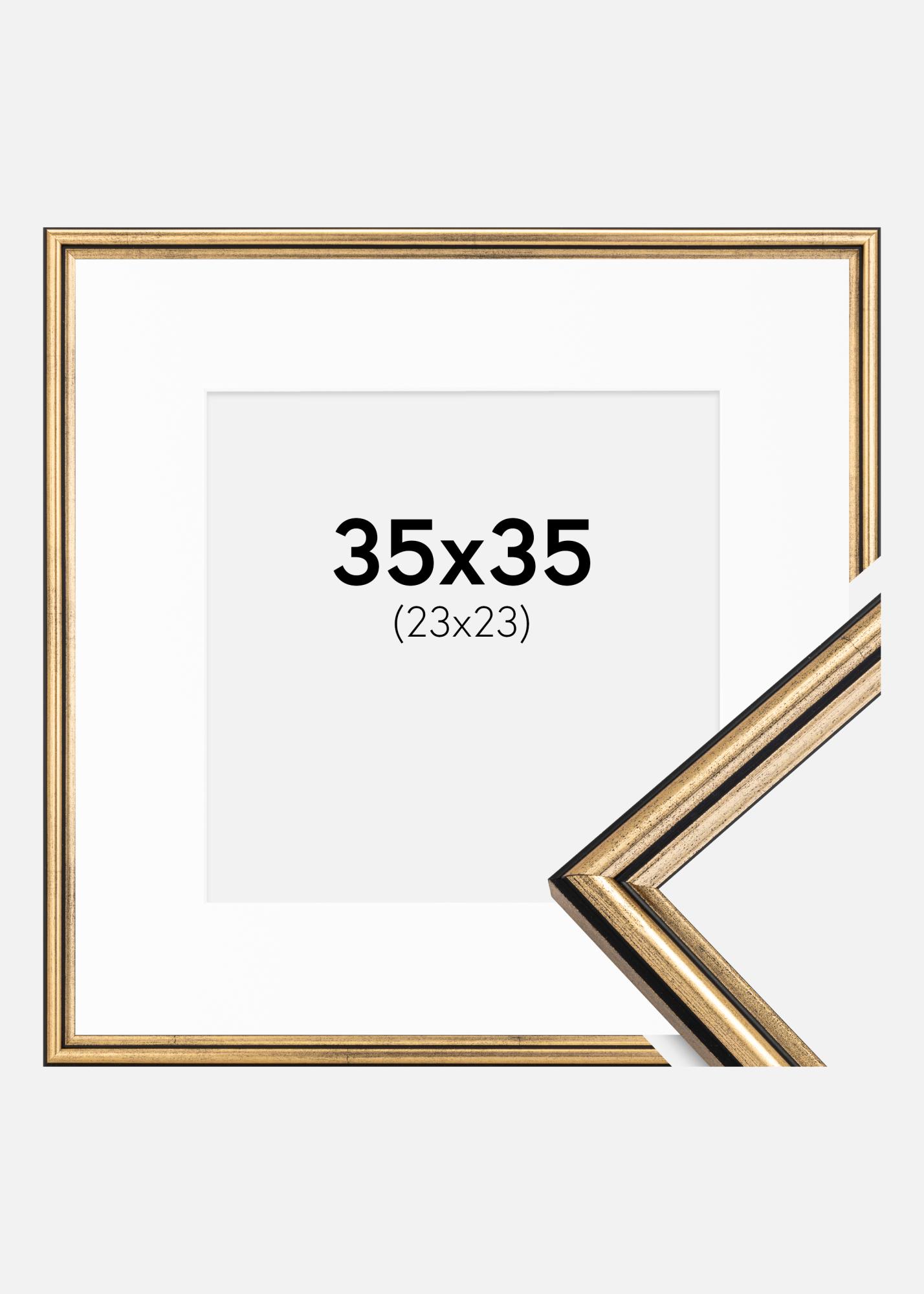 Moldura Horndal Dourado 35x35 cm - Passe-partout Branco 24x24 cm