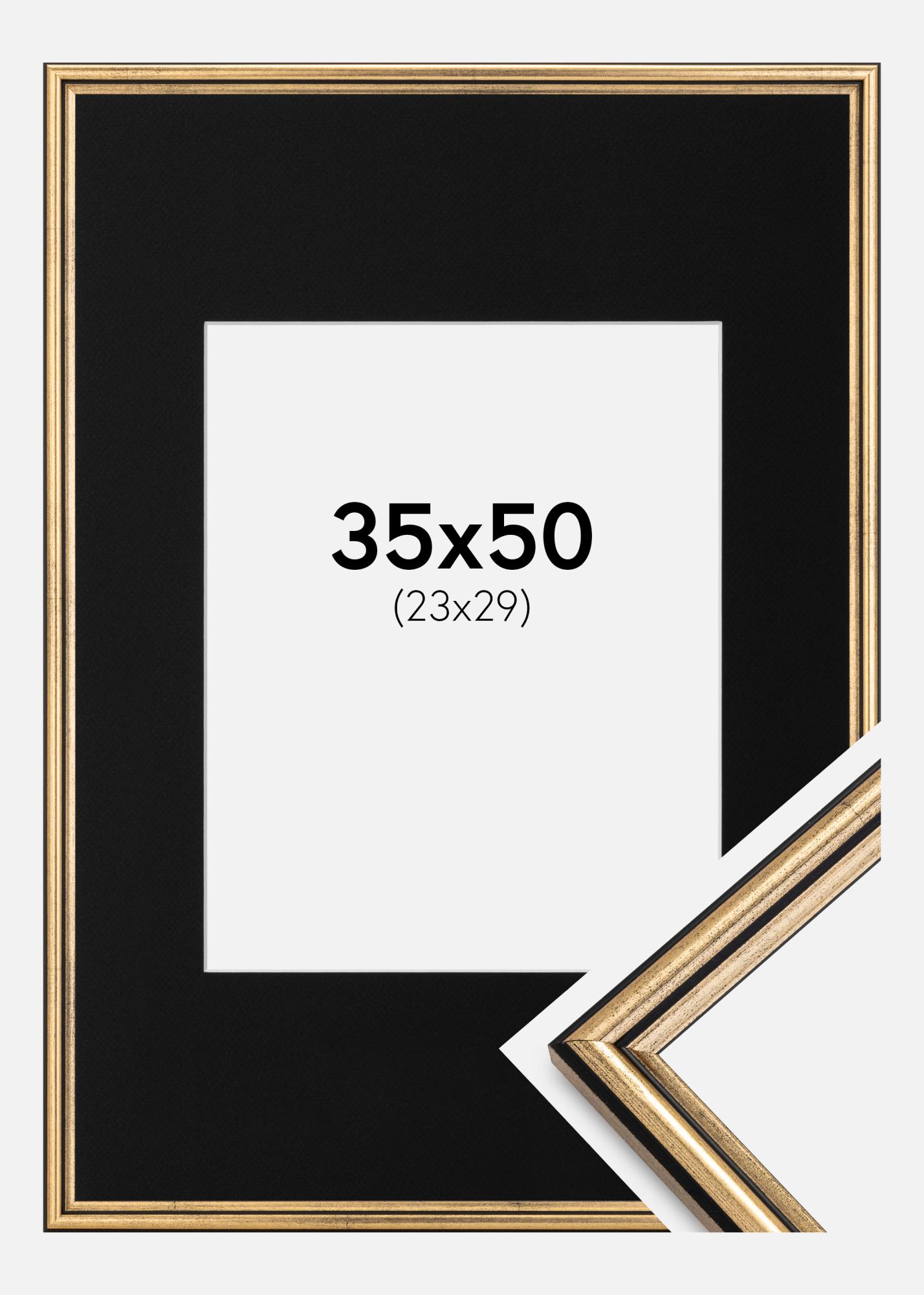 Moldura Horndal Dourado 35x50 cm - Passe-partout Preto 24x30 cm