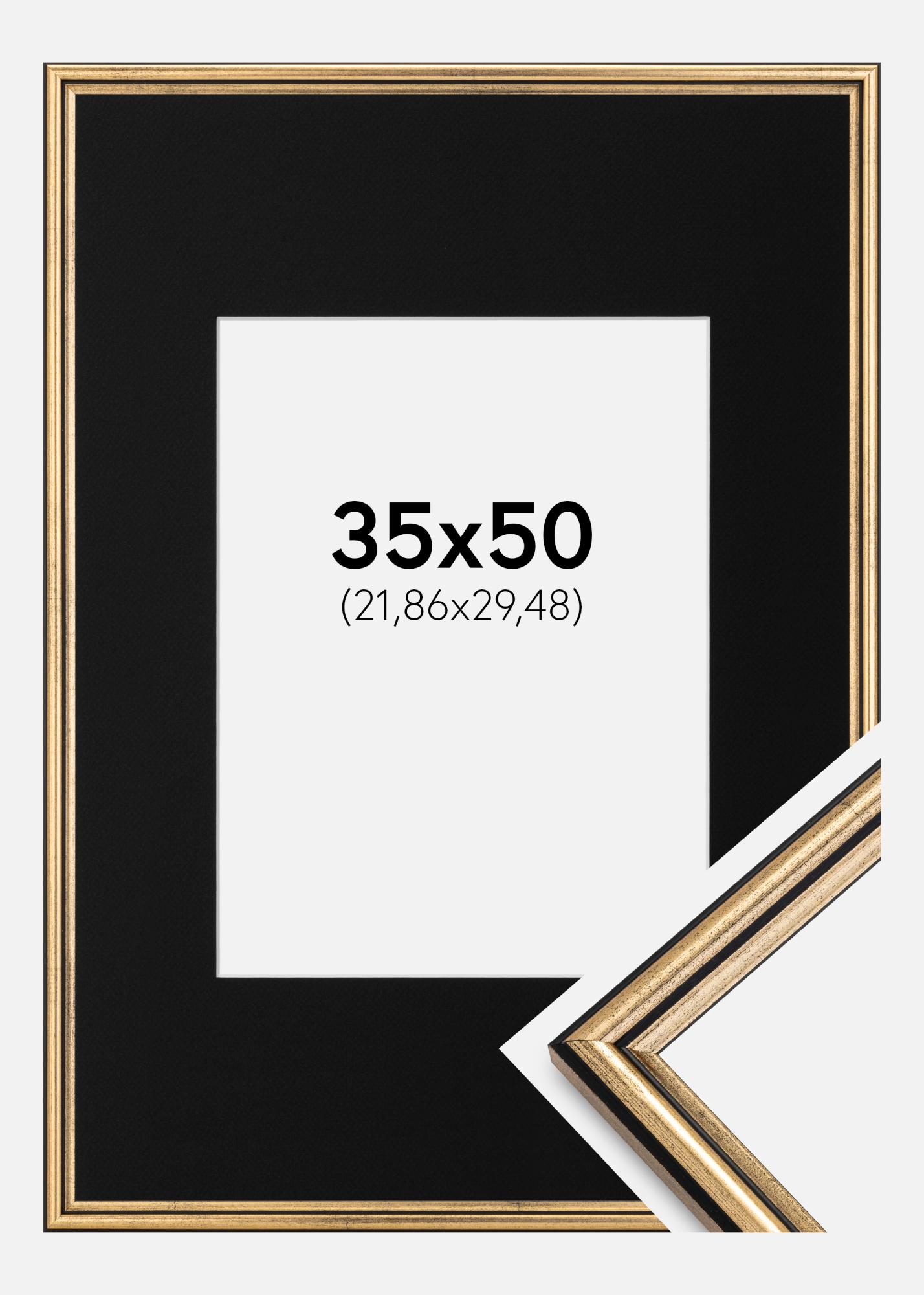Moldura Horndal Dourado 35x50 cm - Passe-partout Preto 9x12 inches