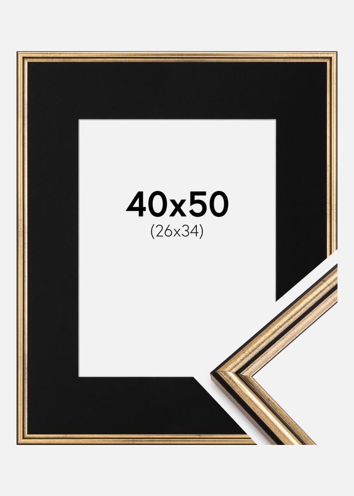 Moldura Horndal Dourado 40x50 cm - Passe-partout Preto 27x35 cm
