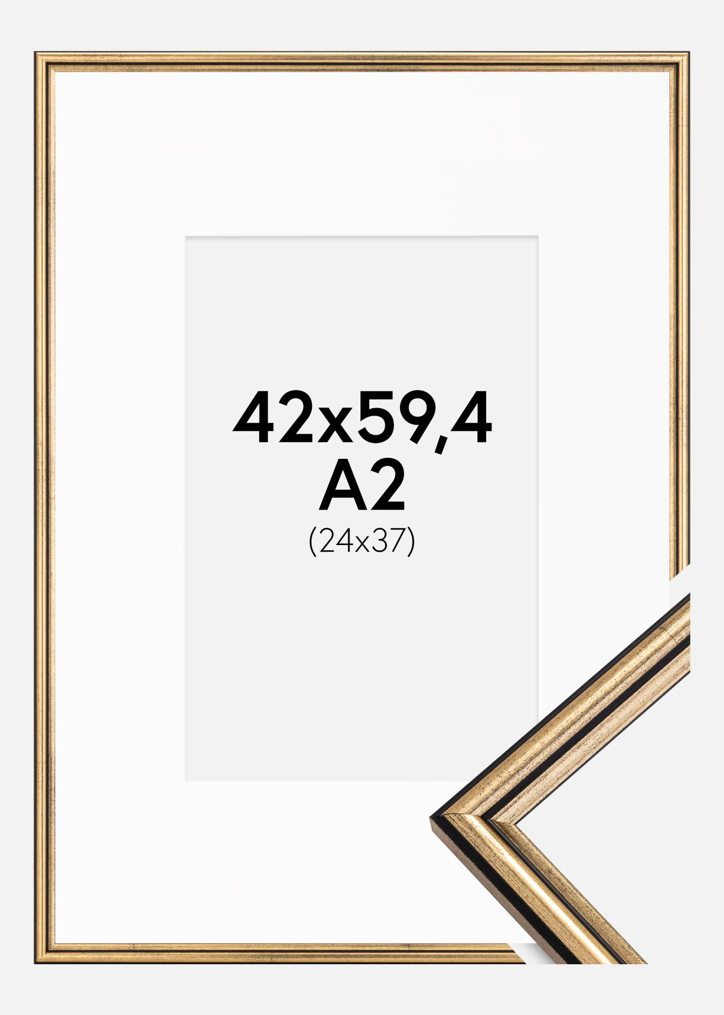 Moldura Horndal Dourado 42x59,4 cm (A2) - Passe-partout Branco 25x38 cm