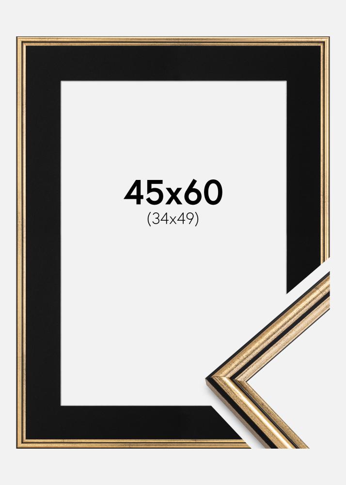 Moldura Horndal Dourado 45x60 cm - Passe-partout Preto 35x50 cm