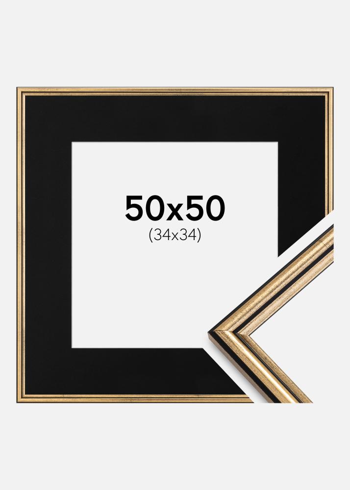 Moldura Horndal Dourado 50x50 cm - Passe-partout Preto 35x35 cm