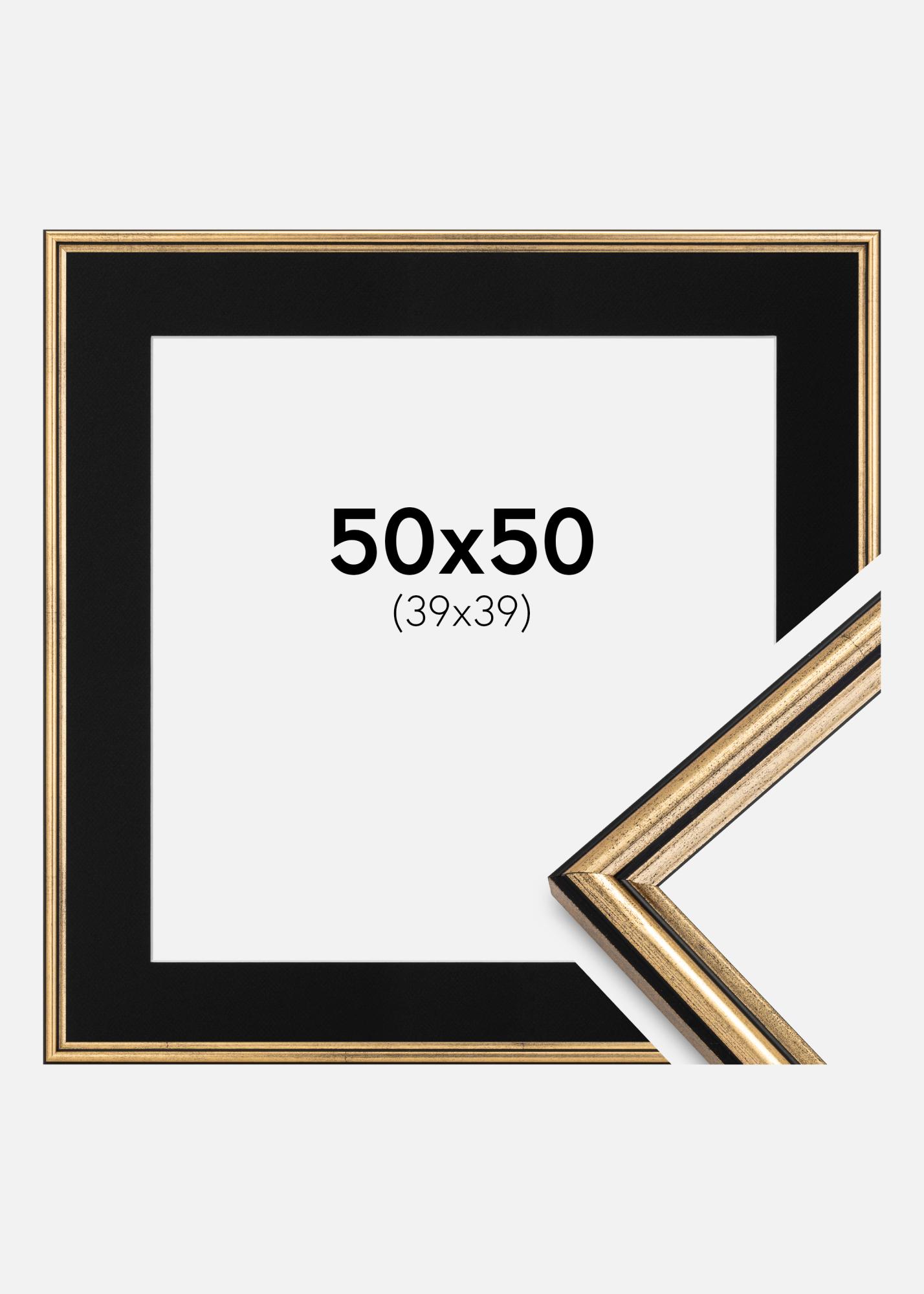 Moldura Horndal Dourado 50x50 cm - Passe-partout Preto 40x40 cm