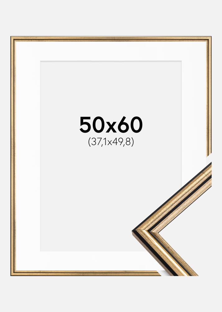 Moldura Horndal Dourado 50x60 cm - Passe-partout Branco 15x20 inches