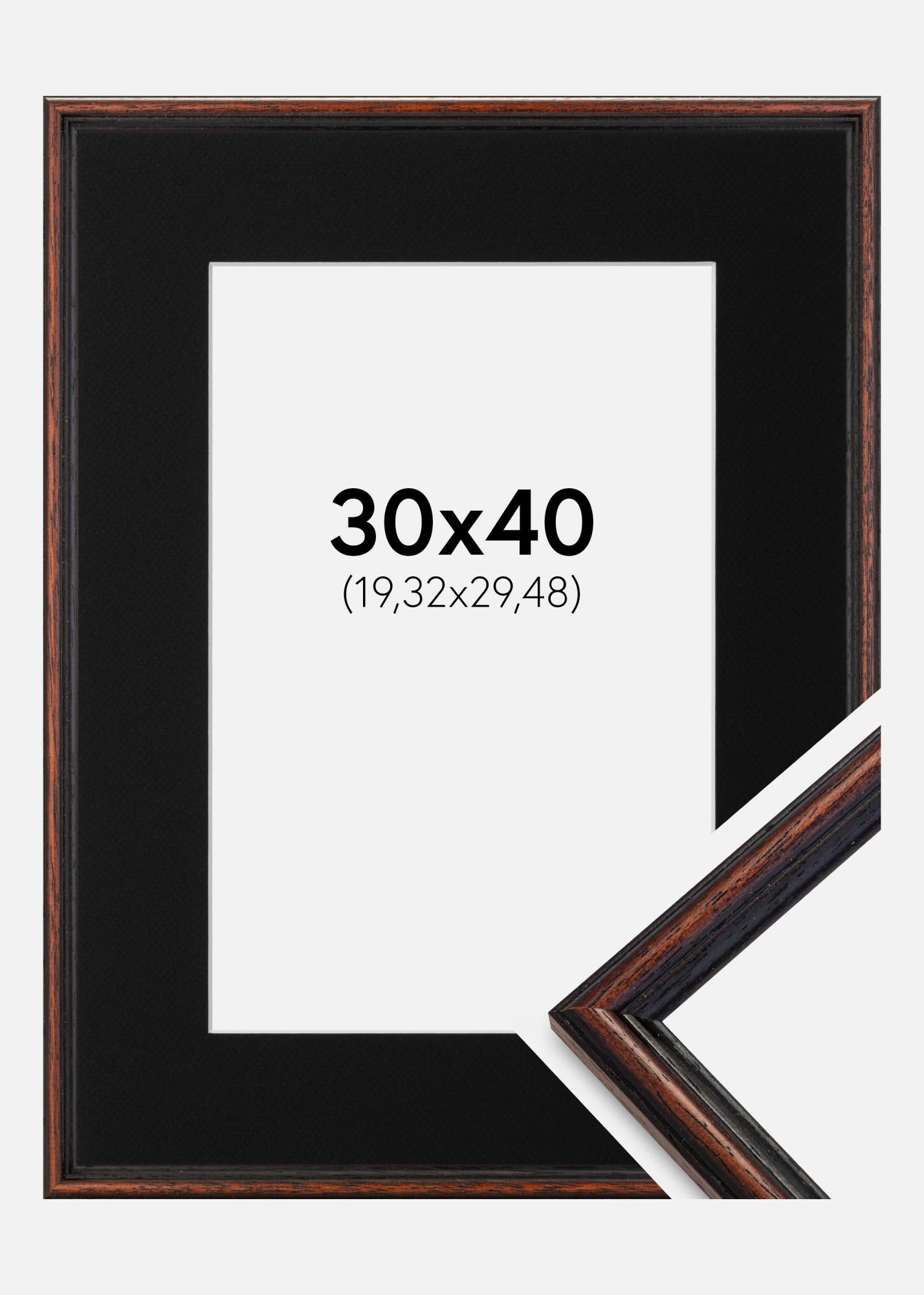 Moldura Horndal Nogueira 30x40 cm - Passe-partout Preto 8x12 inches