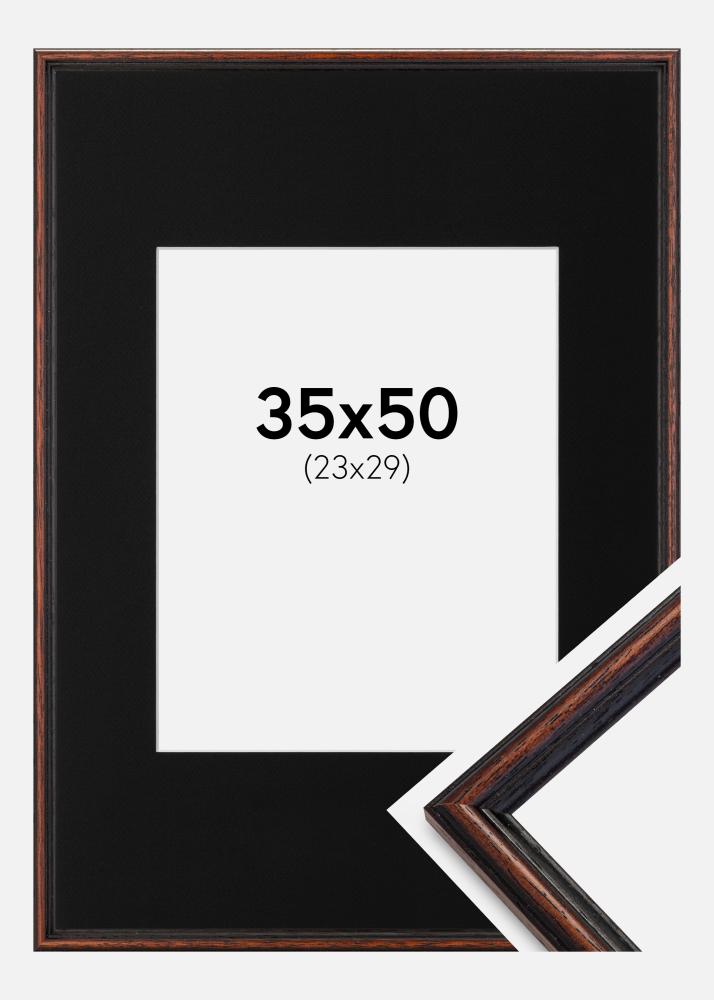 Moldura Horndal Nogueira 35x50 cm - Passe-partout Preto 24x30 cm