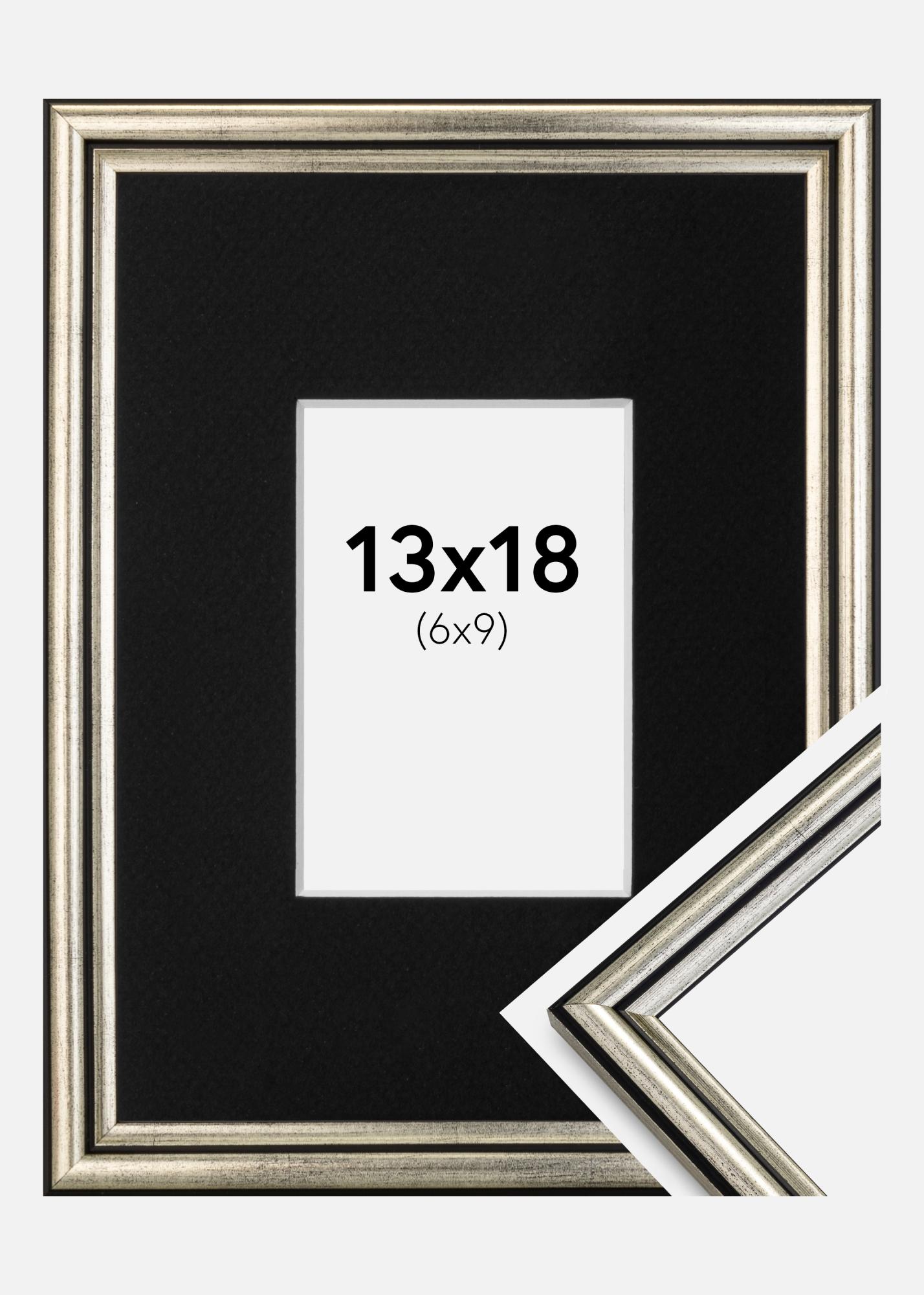 Moldura Horndal Prateado 13x18 cm - Passe-partout Preto 7x10 cm