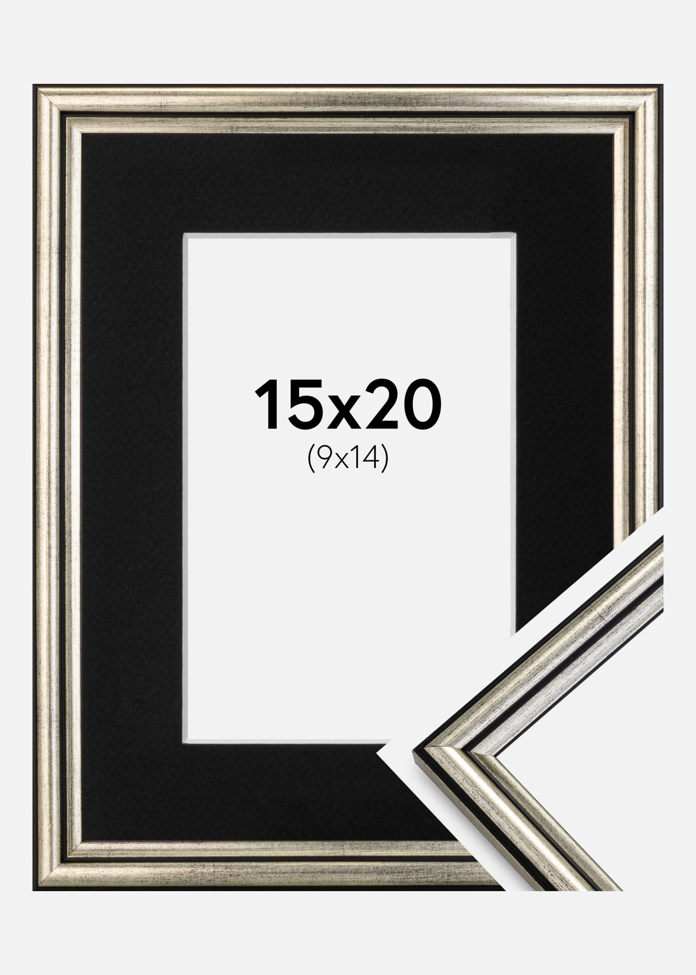 Moldura Horndal Prateado 15x20 cm - Passe-partout Preto 10x15 cm