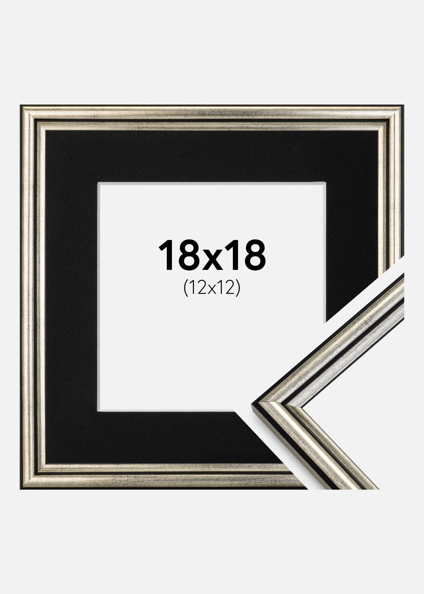 Moldura Horndal Prateado 18x18 cm - Passe-partout Preto 13x13 cm
