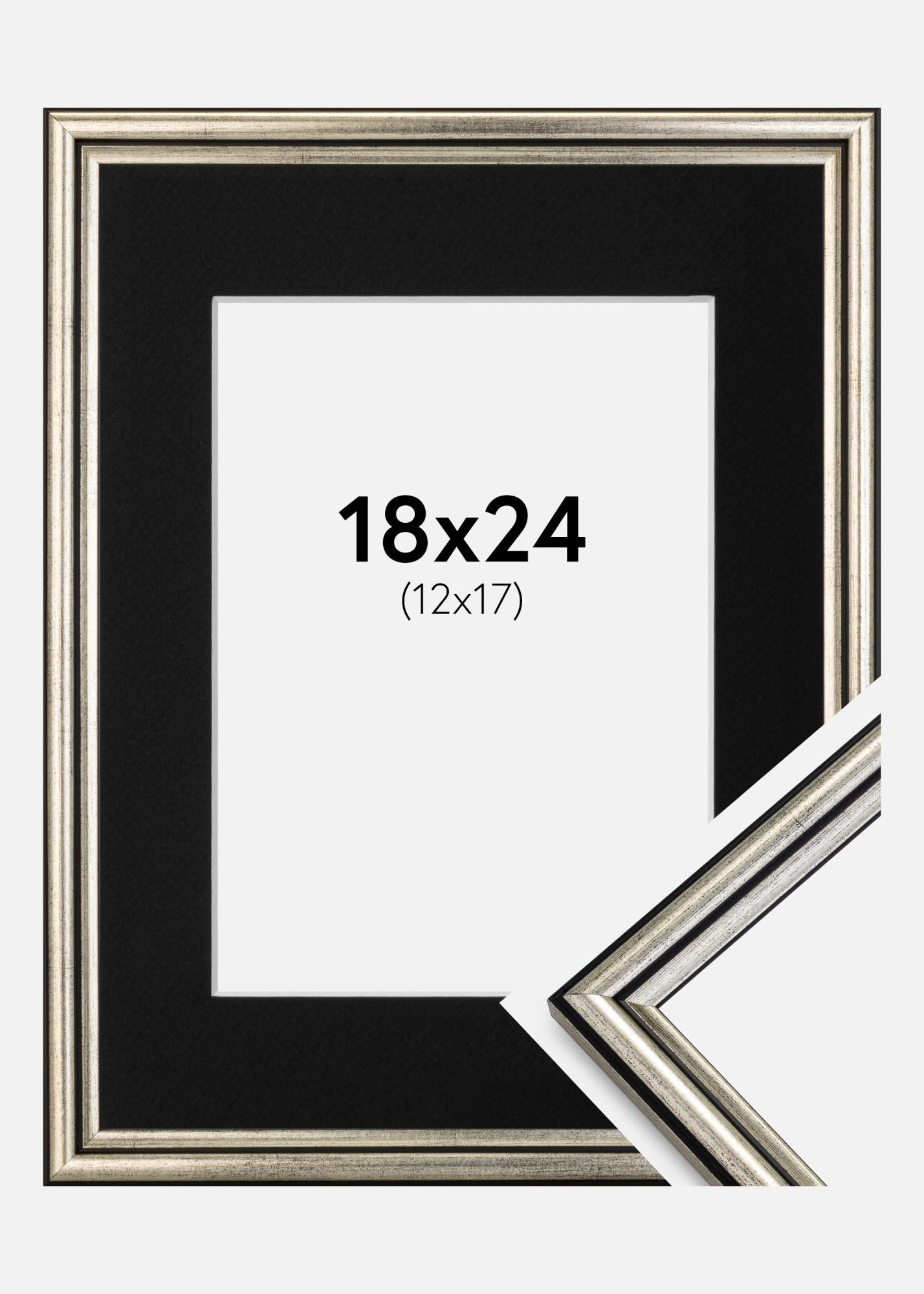 Moldura Horndal Prateado 18x24 cm - Passe-partout Preto 13x18 cm
