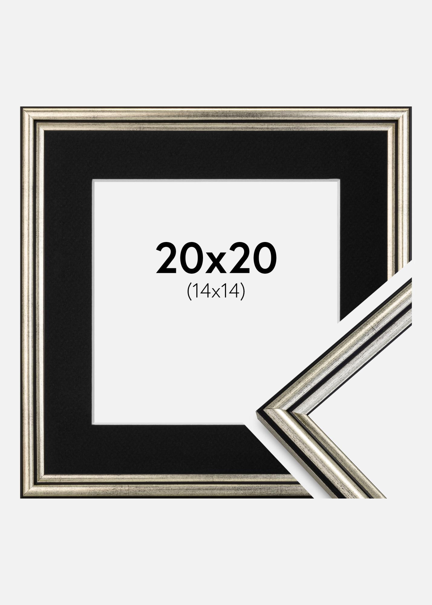Moldura Horndal Prateado 20x20 cm - Passe-partout Preto 15x15 cm
