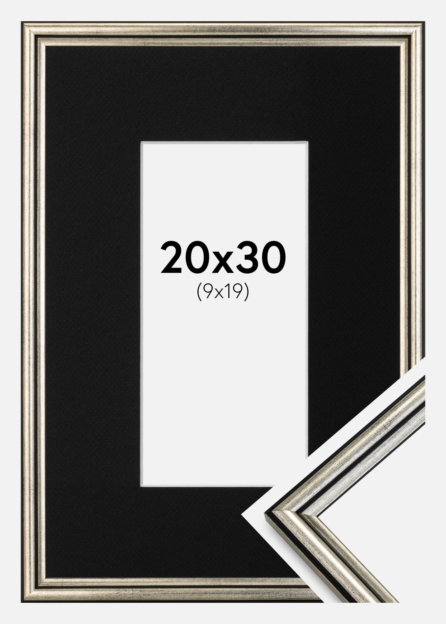 Moldura Horndal Prateado 20x30 cm - Passe-partout Preto 10x20 cm