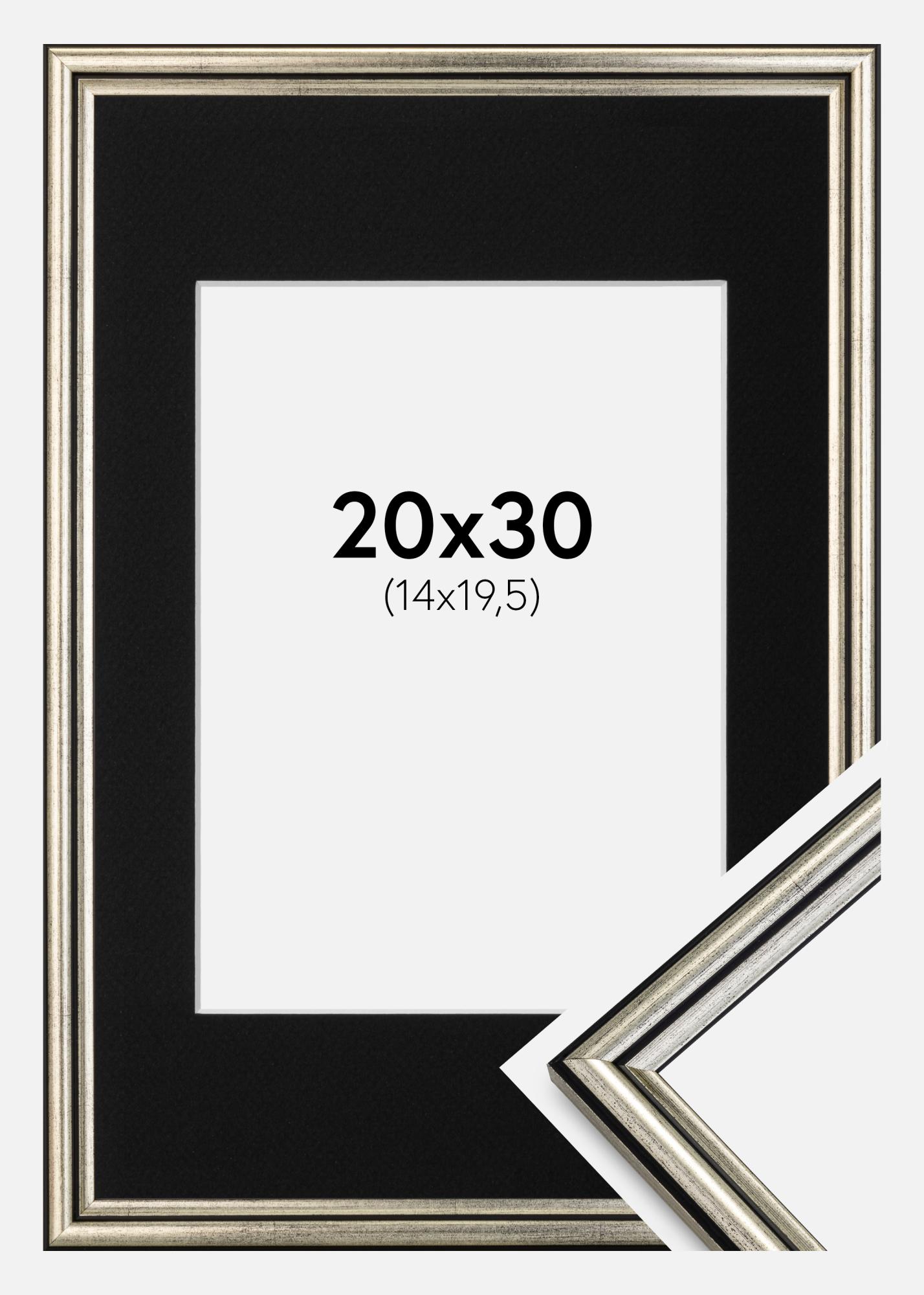 Moldura Horndal Prateado 20x30 cm - Passe-partout Preto 15x21 cm (A5)