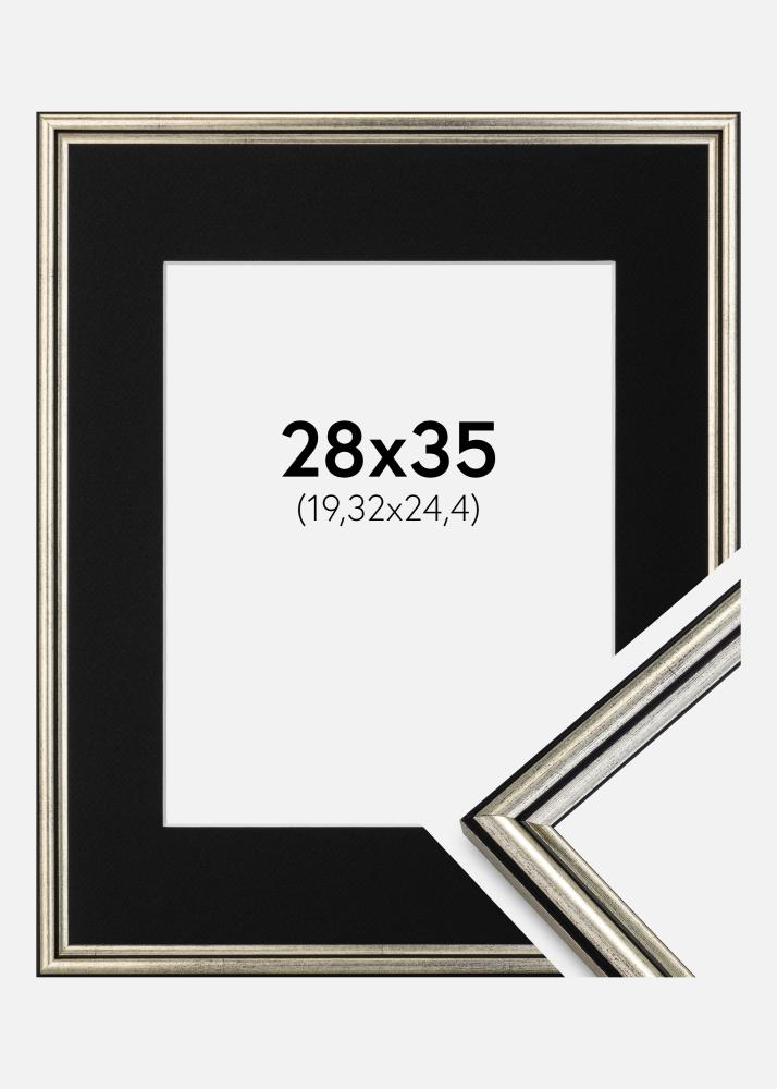 Moldura Horndal Prateado 28x35 cm - Passe-partout Preto 8x10 inches