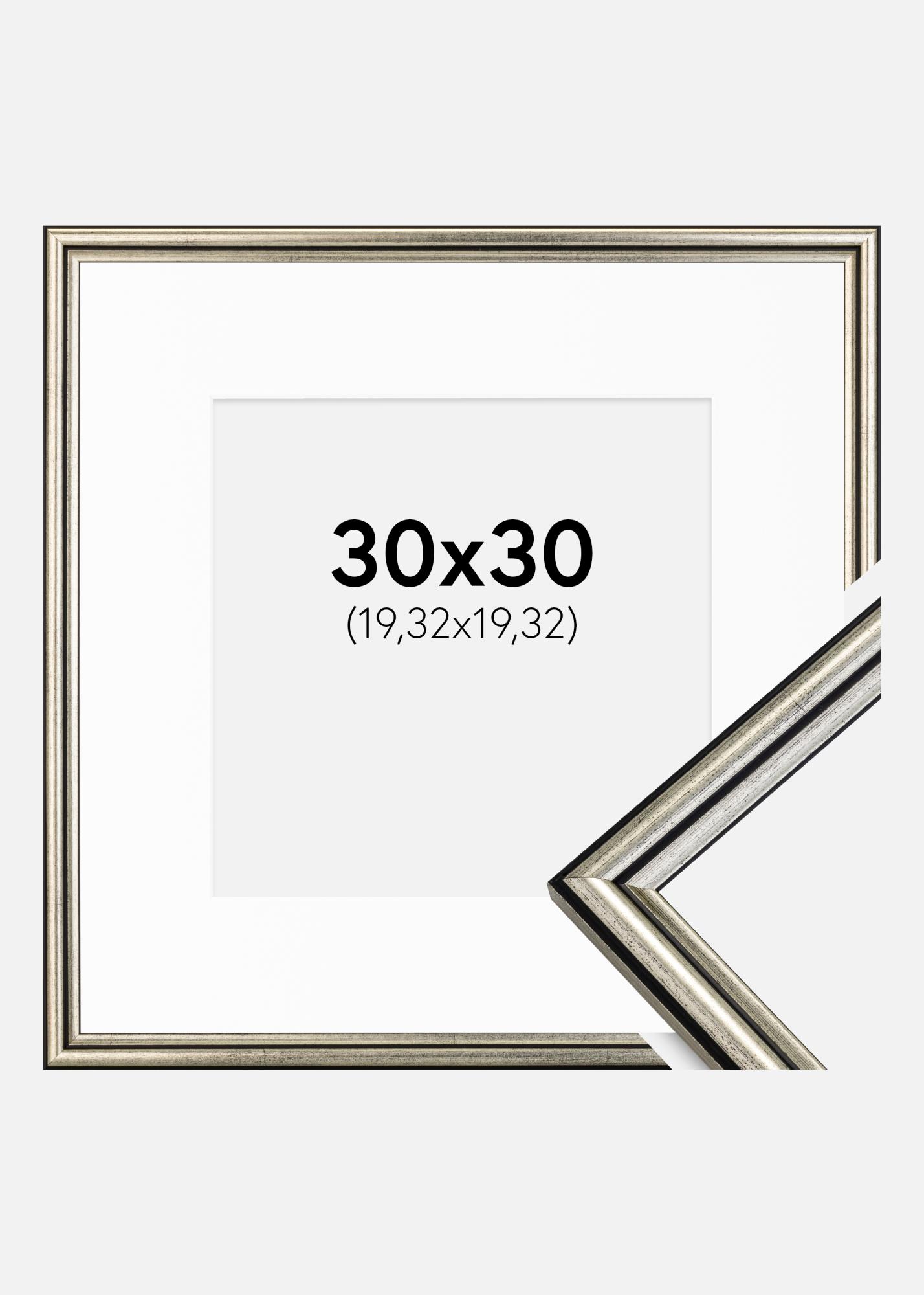 Moldura Horndal Prateado 30x30 cm - Passe-partout Branco 8x8 inches