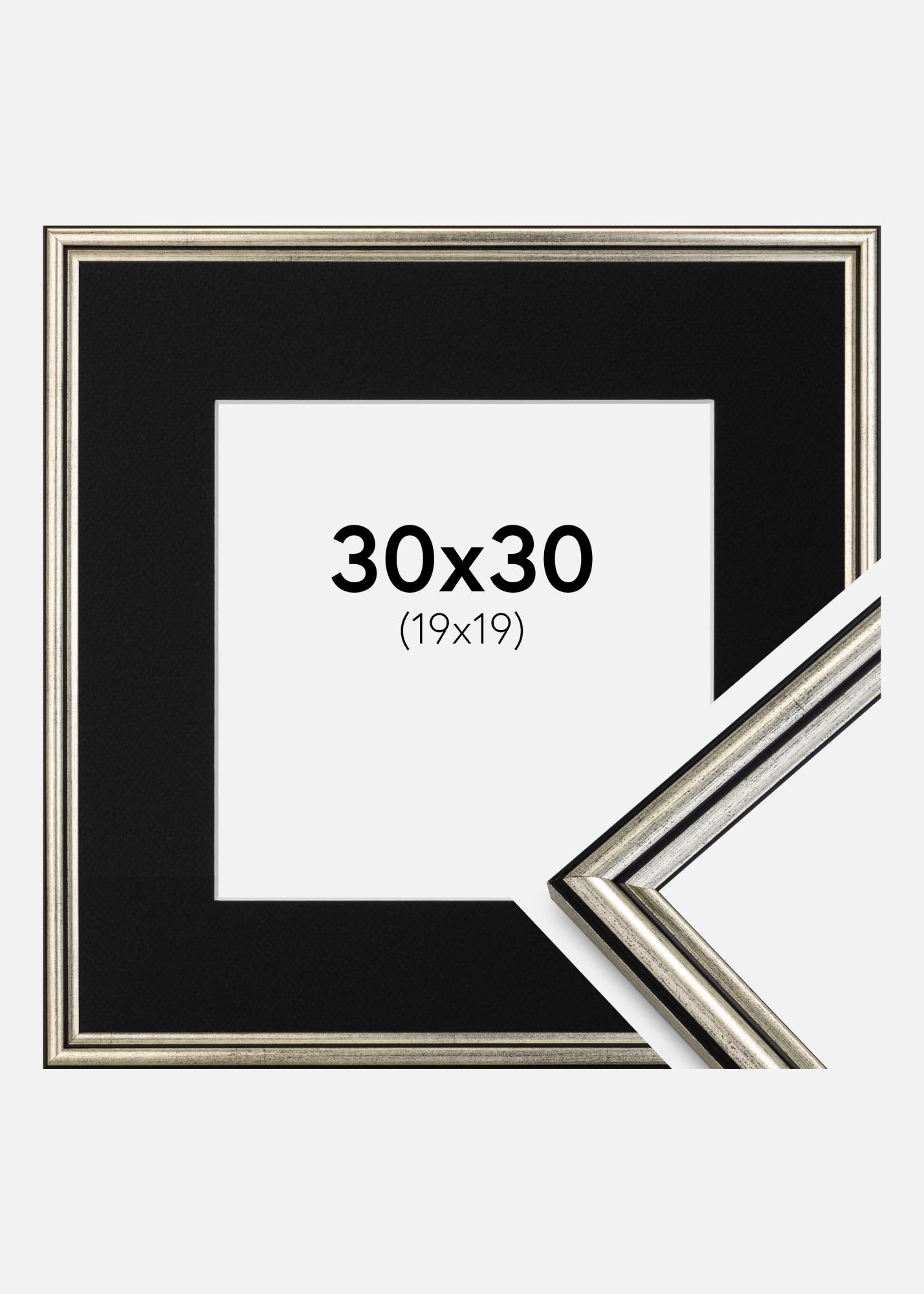 Moldura Horndal Prateado 30x30 cm - Passe-partout Preto 20x20 cm