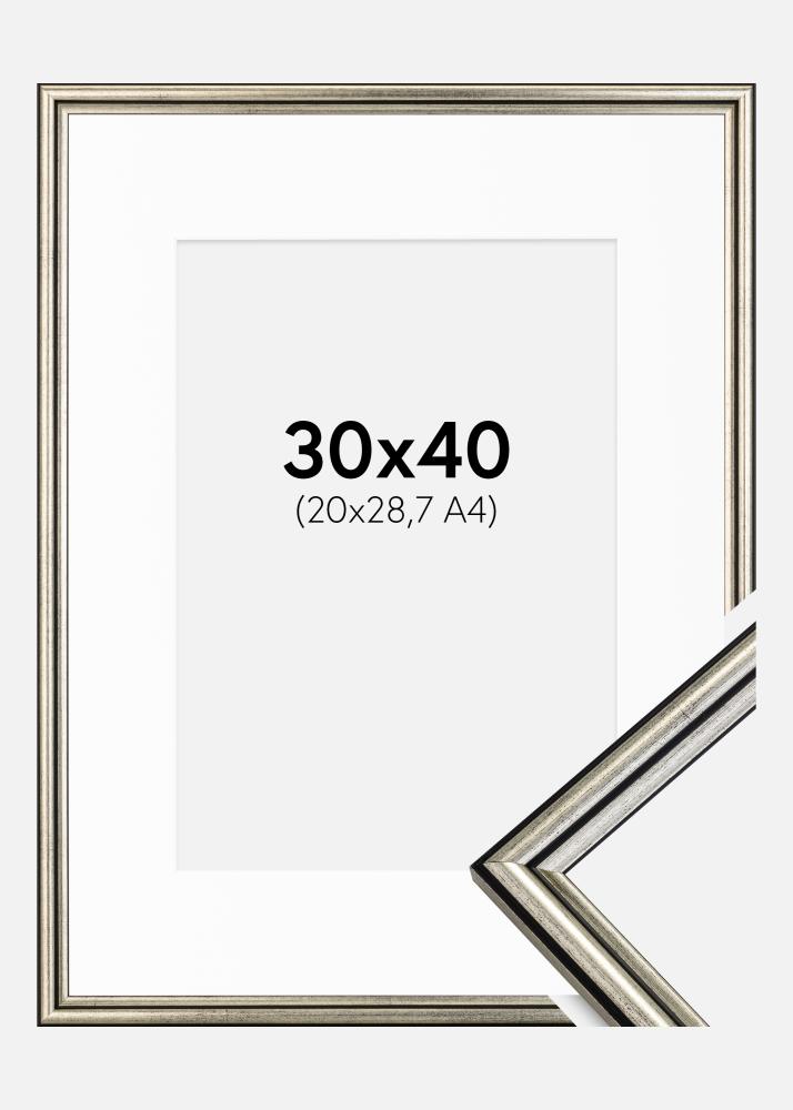 Moldura Horndal Prateado 30x40 cm - Passe-partout Branco 21x29,7 cm (A4)