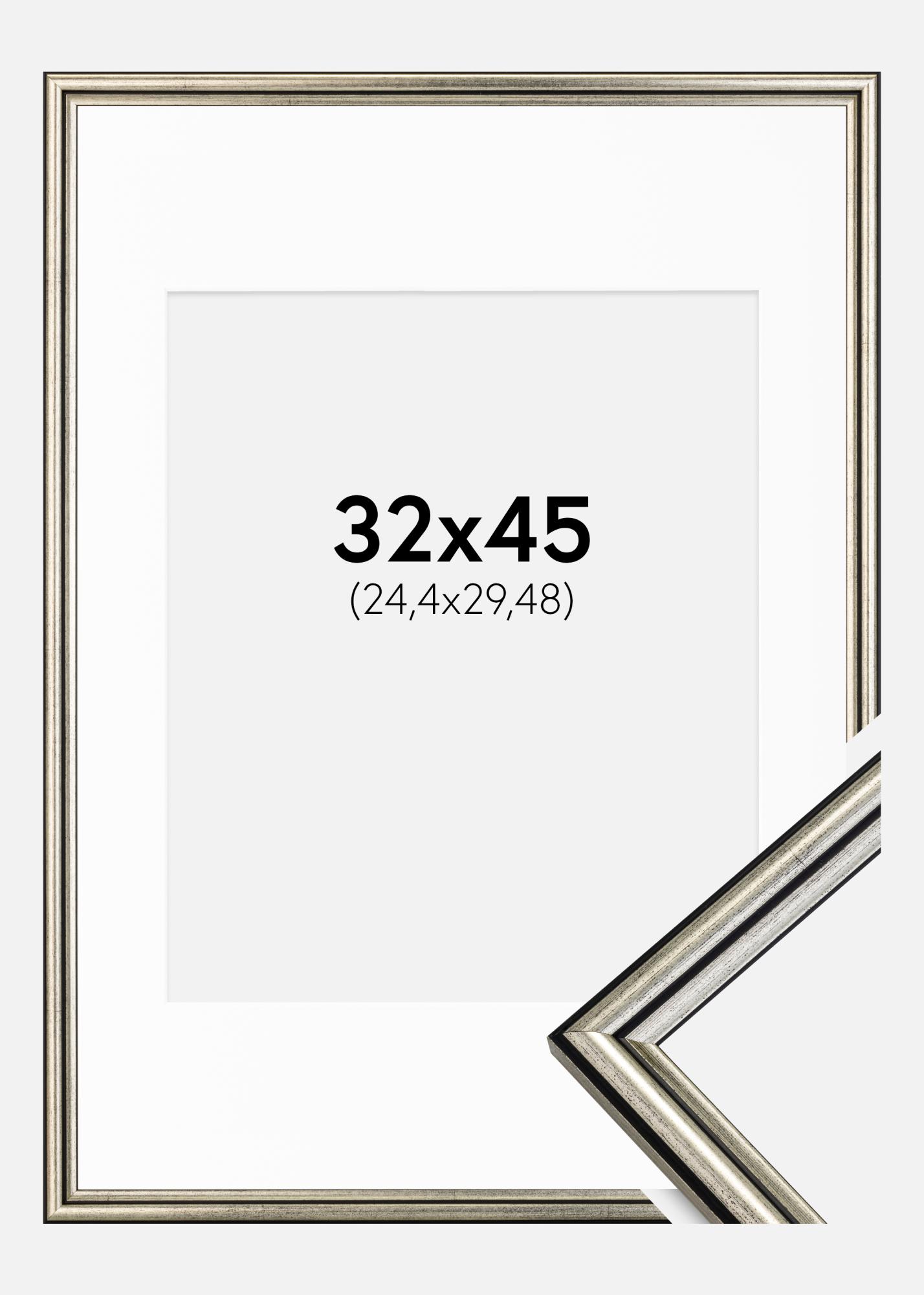 Moldura Horndal Prateado 32x45 cm - Passe-partout Branco 10x12 inches