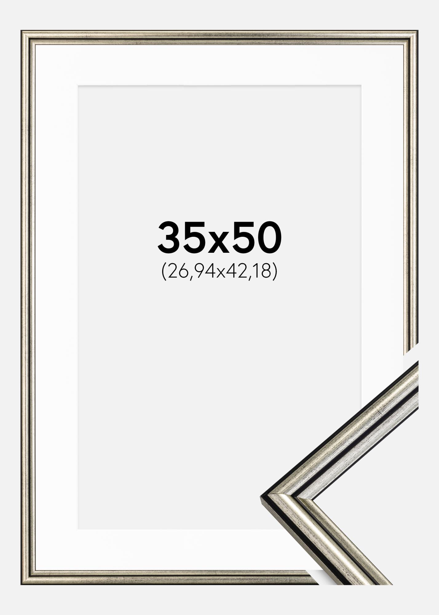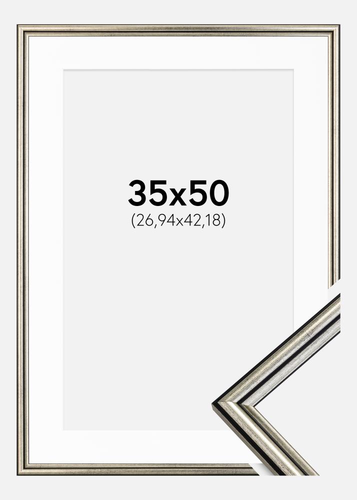 Moldura Horndal Prateado 35x50 cm - Passe-partout Branco 11x17 inches