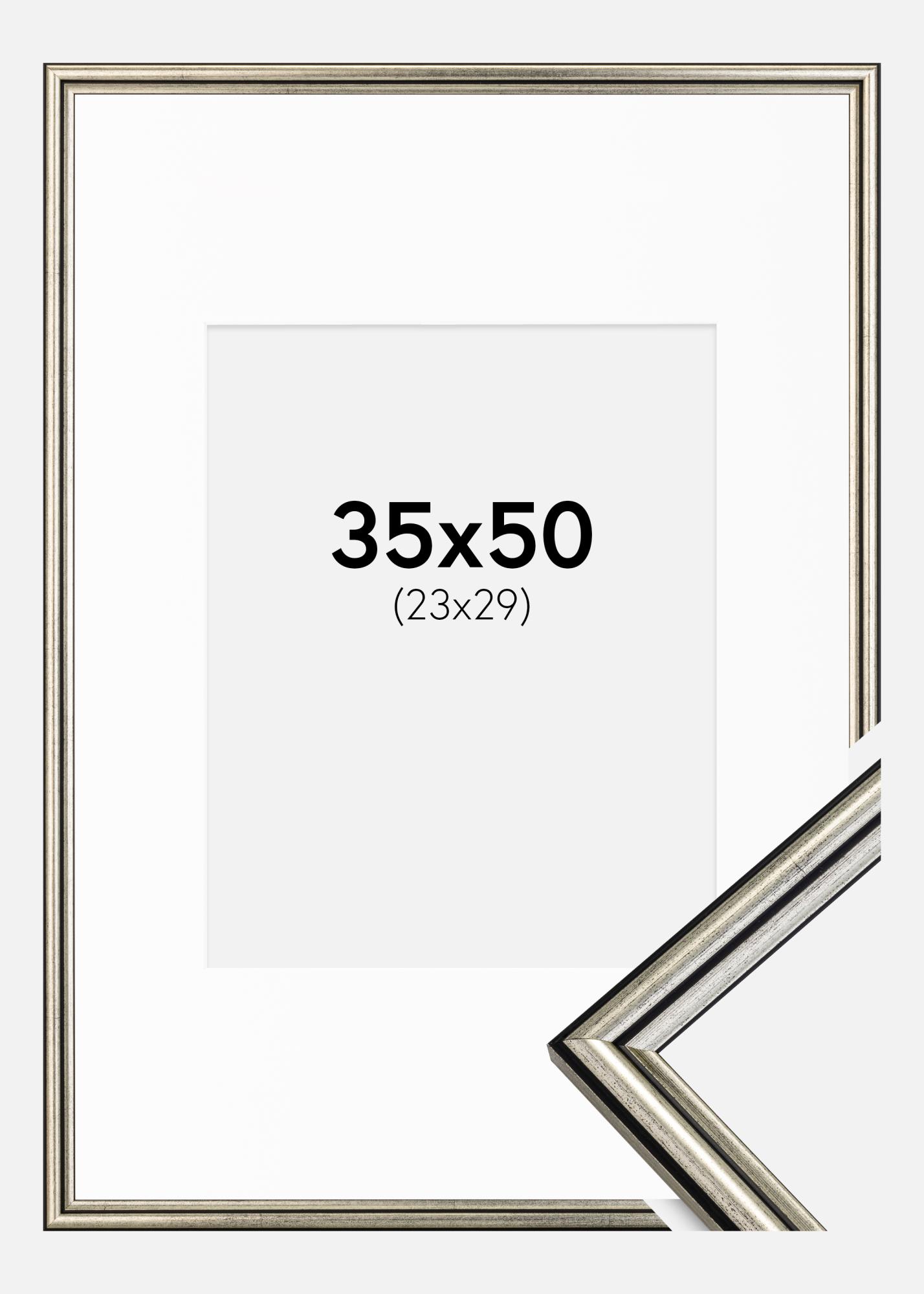 Moldura Horndal Prateado 35x50 cm - Passe-partout Branco 24x30 cm