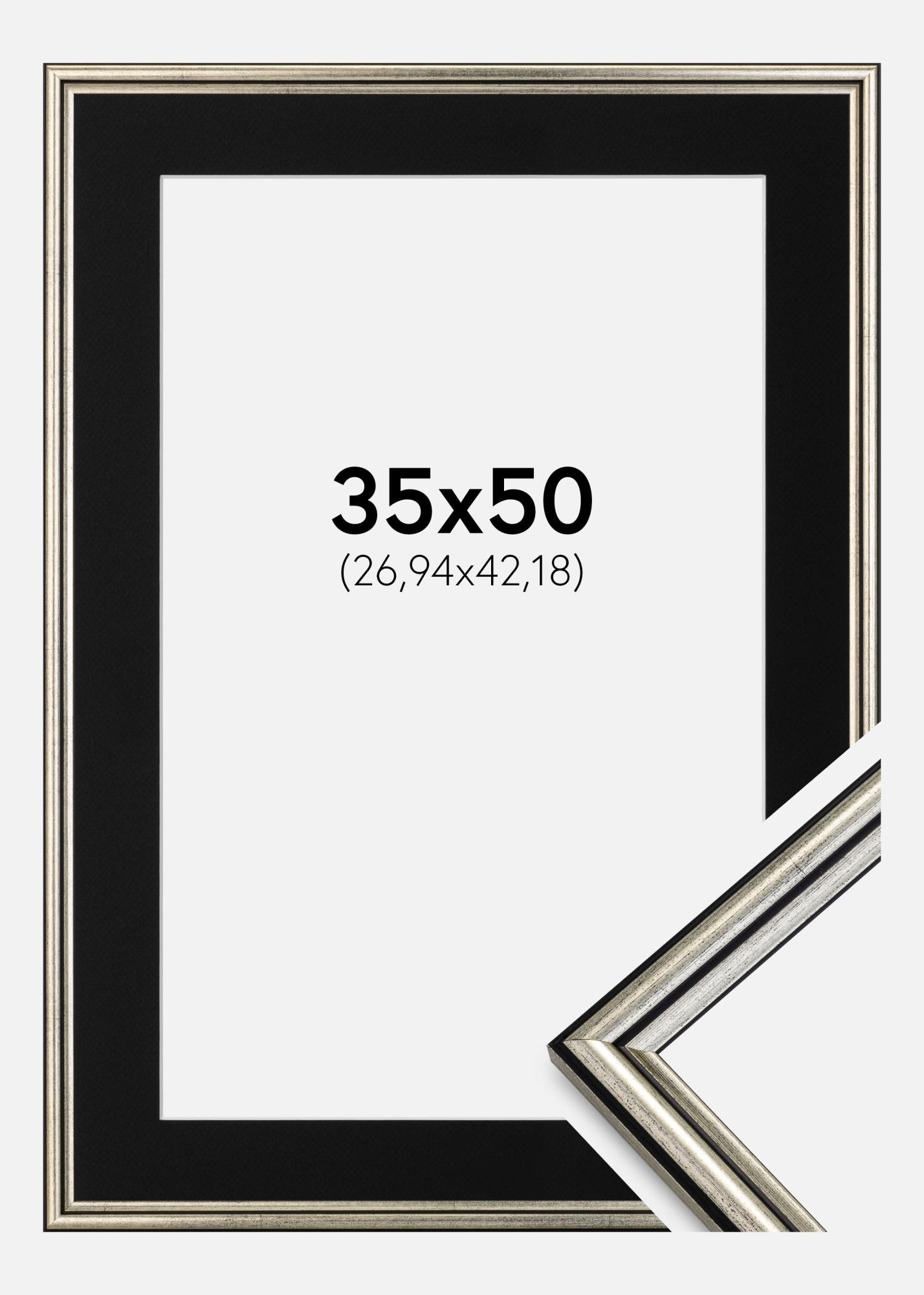 Moldura Horndal Prateado 35x50 cm - Passe-partout Preto 11x17 inches