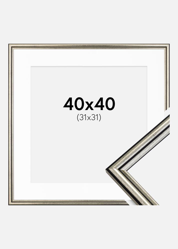 Moldura Horndal Prateado 40x40 cm - Passe-partout Branco 32x32 cm