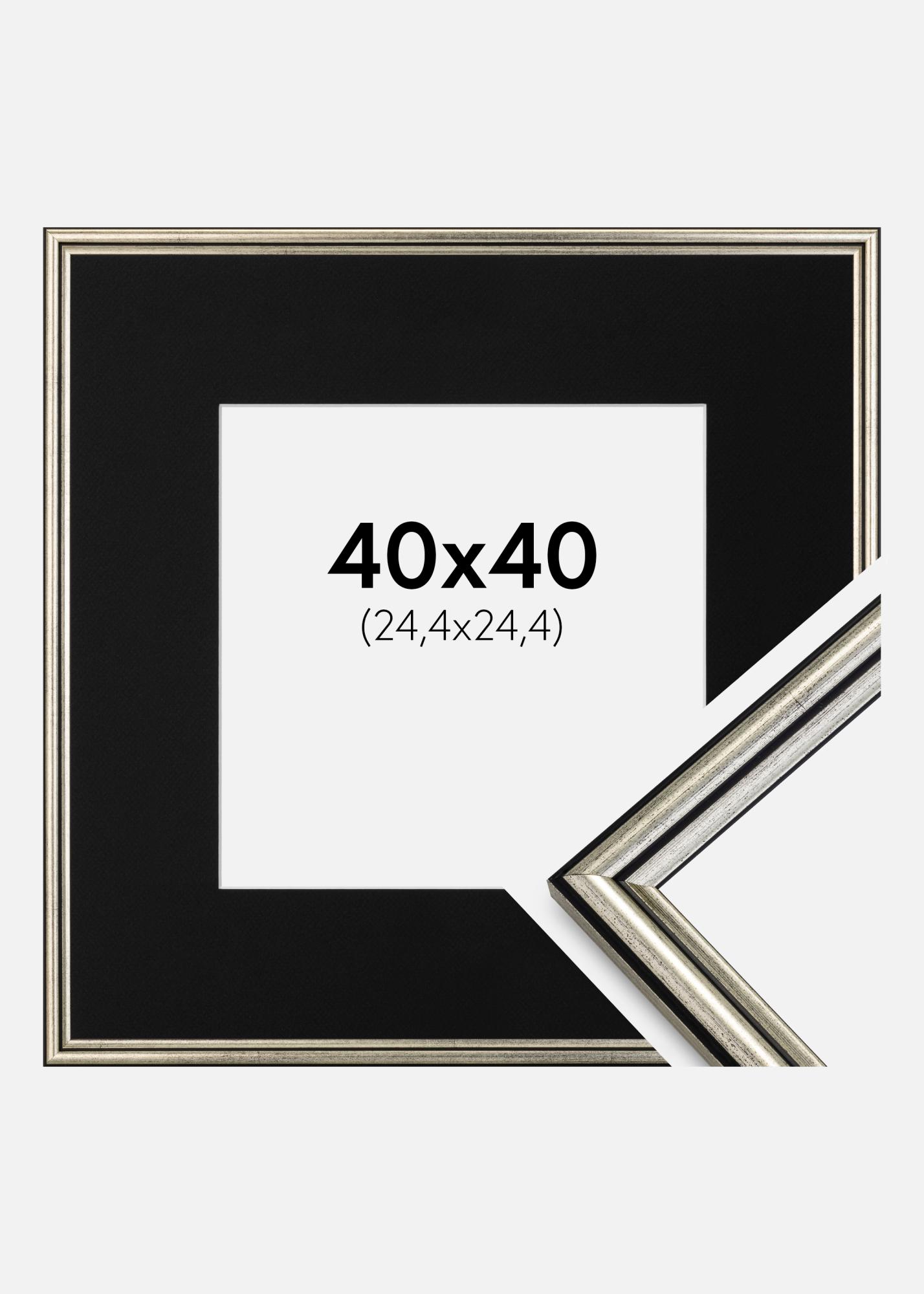 Moldura Horndal Prateado 40x40 cm - Passe-partout Preto 10x10 inches
