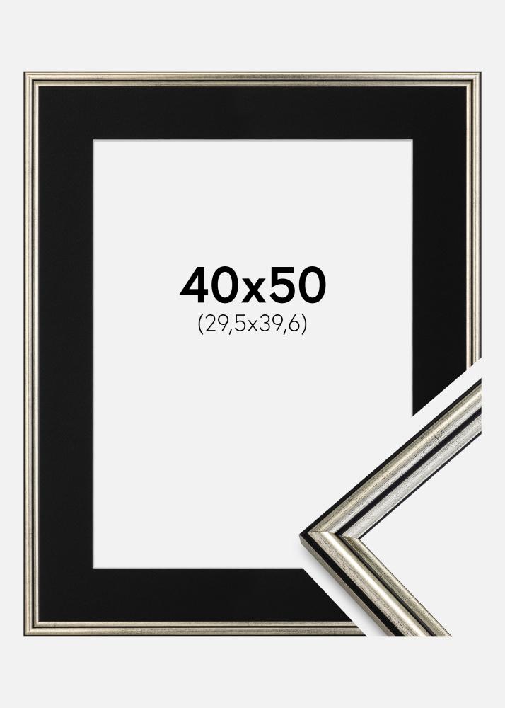 Moldura Horndal Prateado 40x50 cm - Passe-partout Preto 12x16 inches