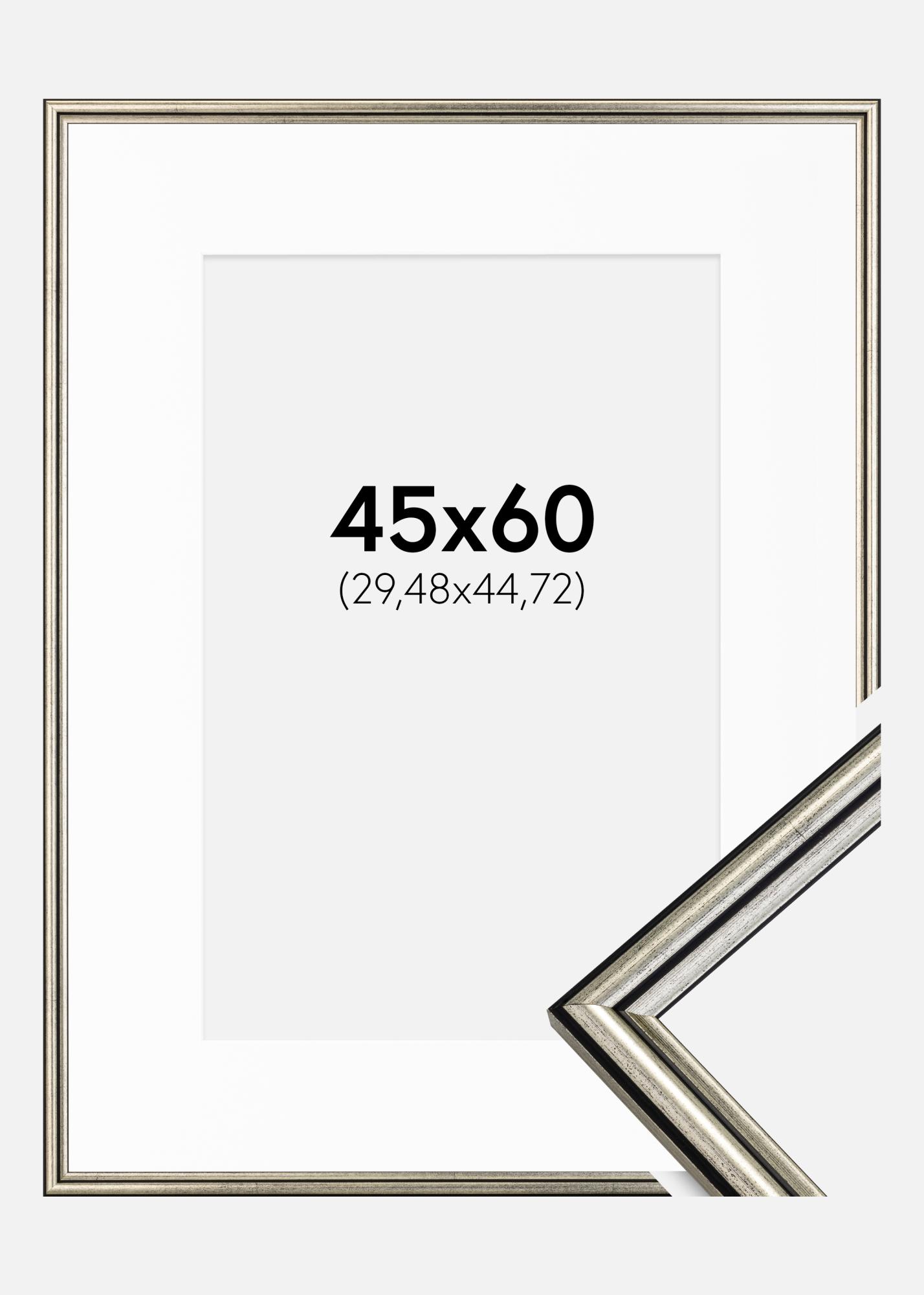 Moldura Horndal Prateado 45x60 cm - Passe-partout Branco 12x18 inches