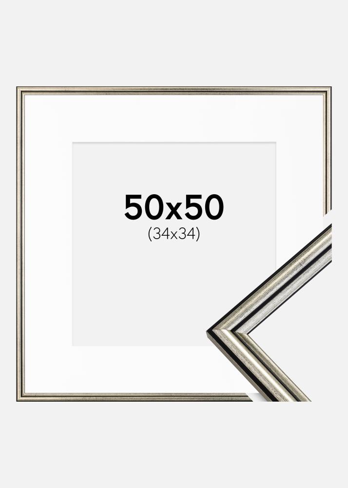 Moldura Horndal Prateado 50x50 cm - Passe-partout Branco 35x35 cm