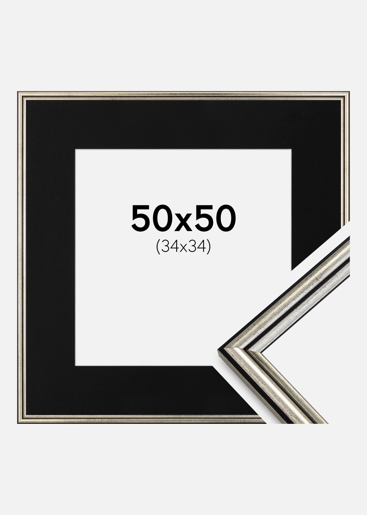Moldura Horndal Prateado 50x50 cm - Passe-partout Preto 35x35 cm