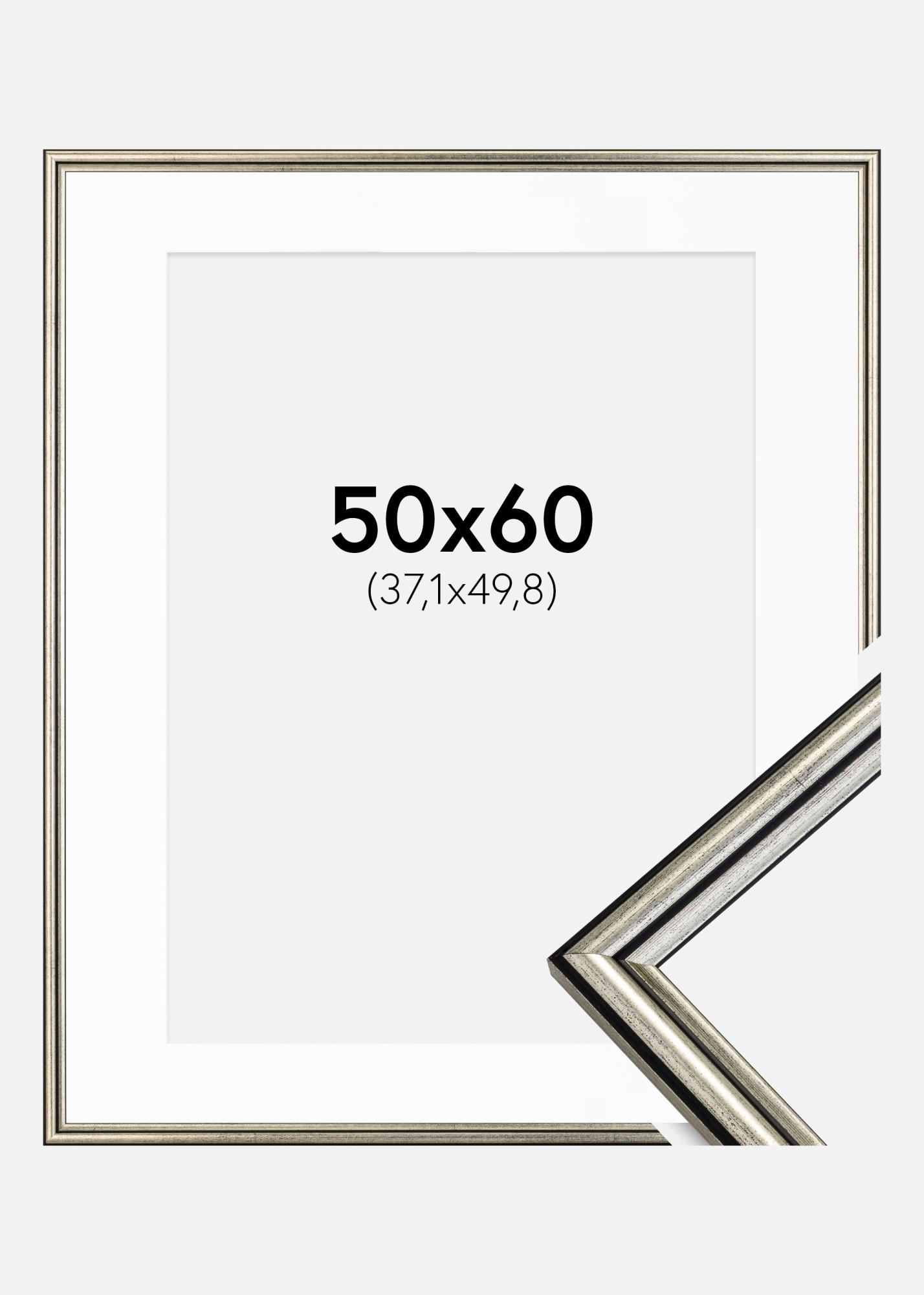 Moldura Horndal Prateado 50x60 cm - Passe-partout Branco 15x20 inches