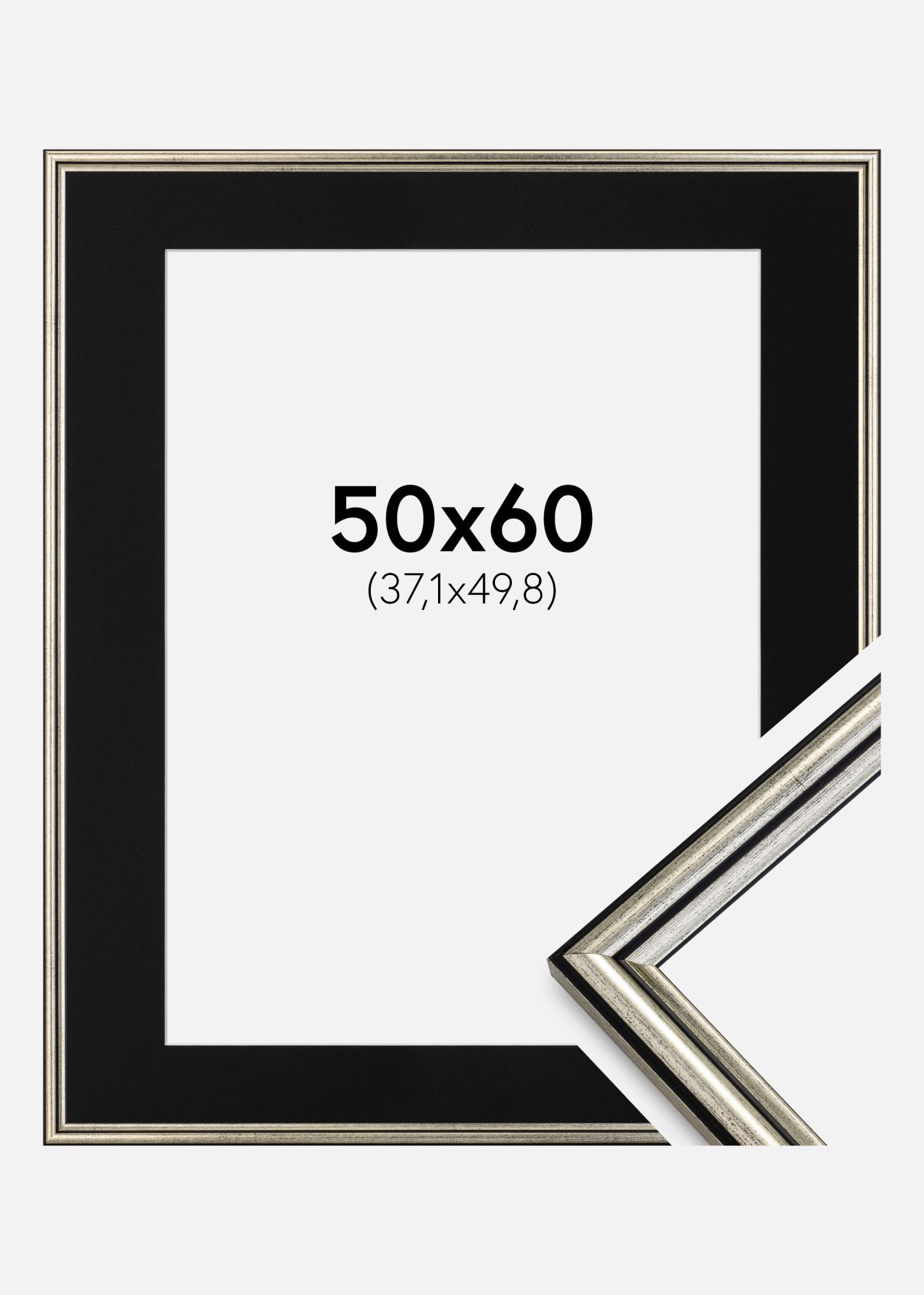 Moldura Horndal Prateado 50x60 cm - Passe-partout Preto 15x20 inches