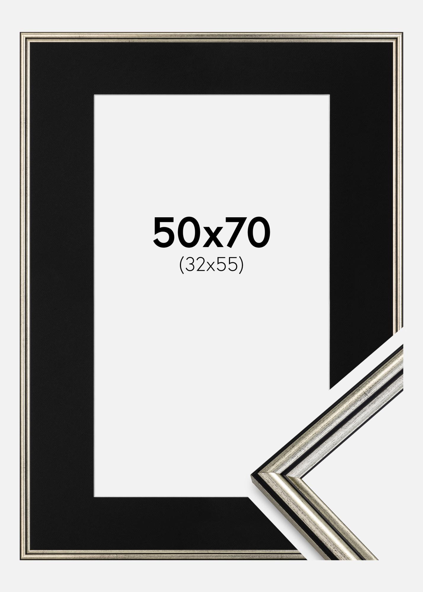 Moldura Horndal Prateado 50x70 cm - Passe-partout Preto 33x56 cm