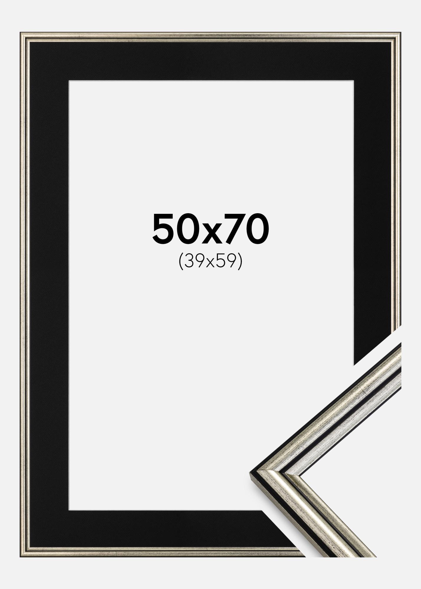 Moldura Horndal Prateado 50x70 cm - Passe-partout Preto 40x60 cm