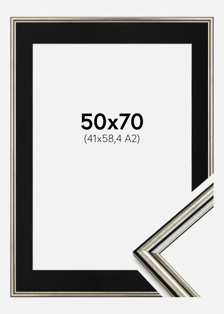 Moldura Horndal Prateado 50x70 cm - Passe-partout Preto 42x59,4 cm (A2)