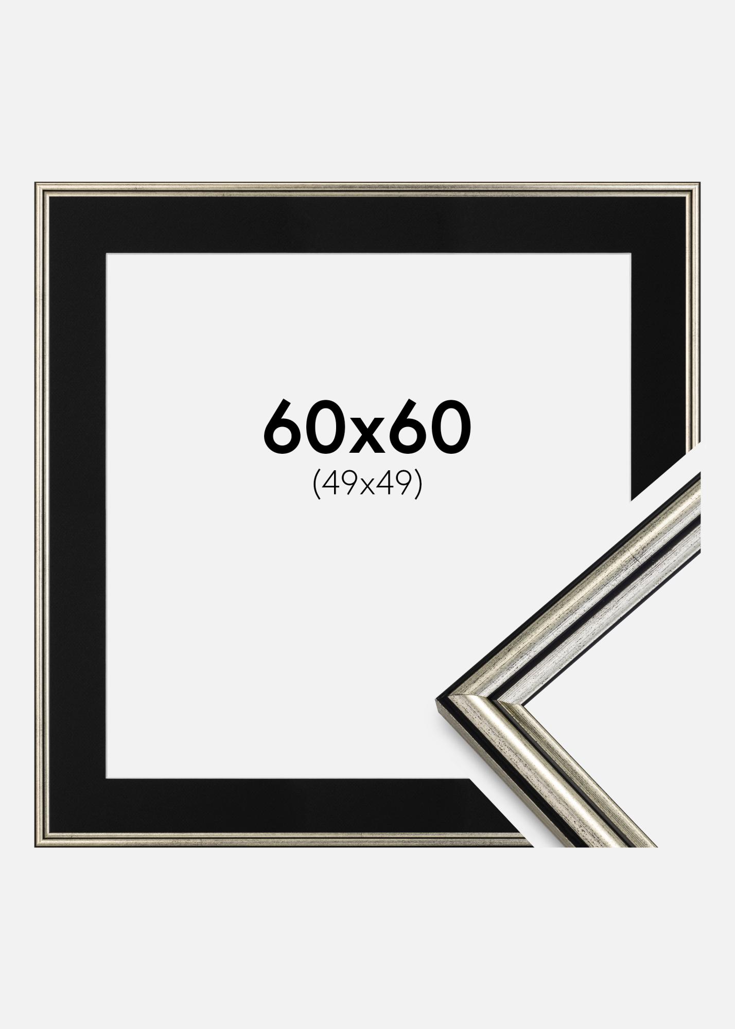 Moldura Horndal Prateado 60x60 cm - Passe-partout Preto 50x50 cm