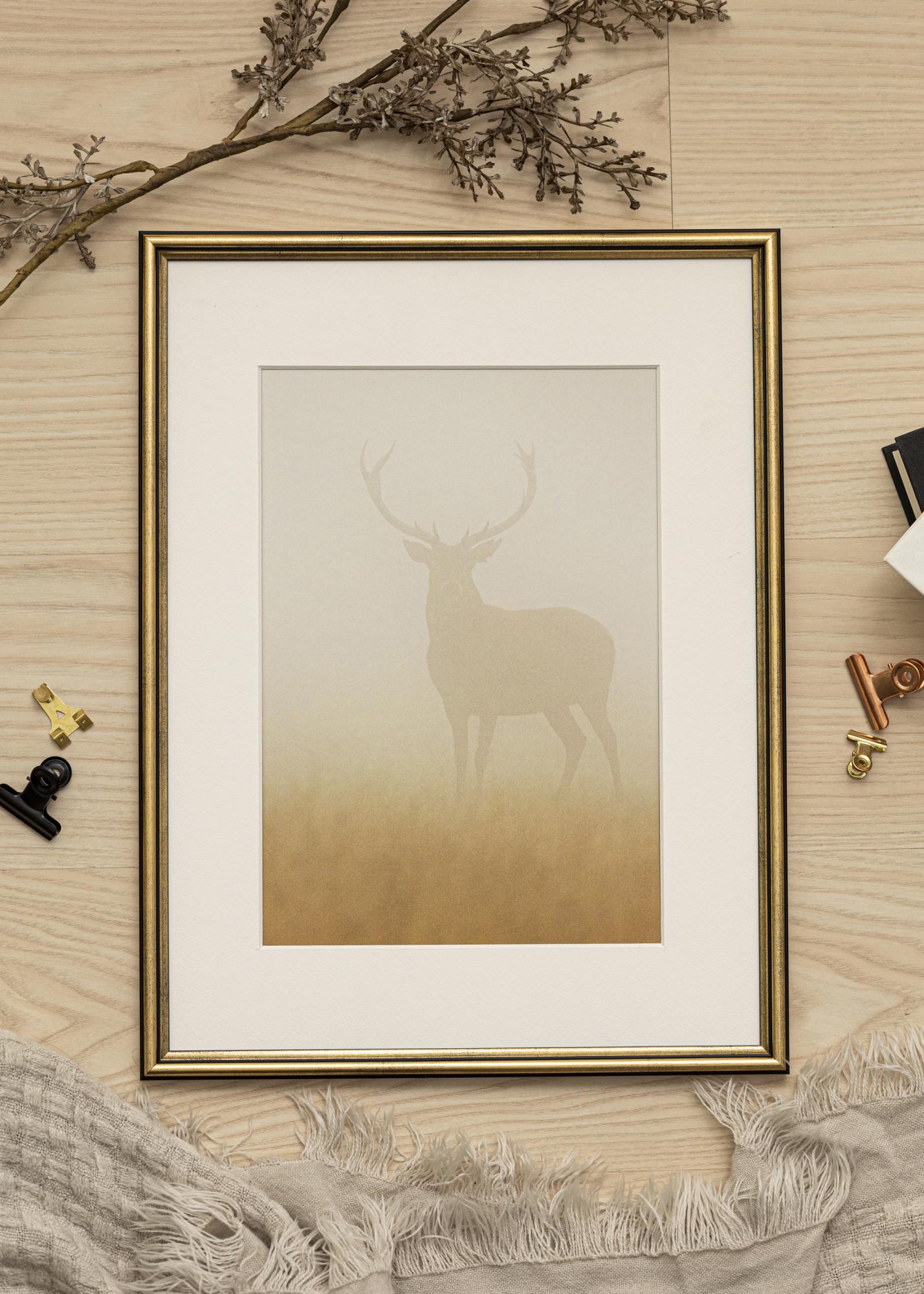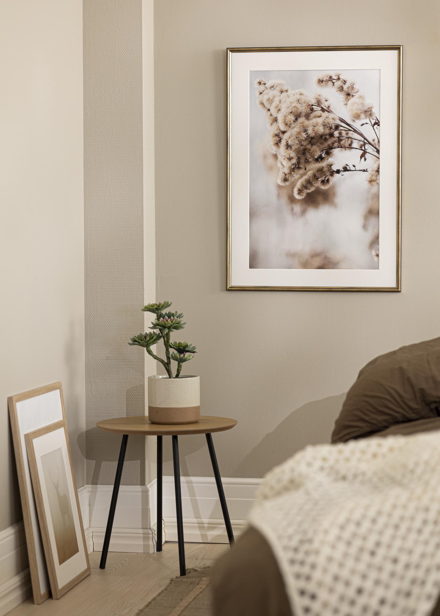 Dê às suas fotos favoritas uma moldura luxuosa e retro que dá um toque especial à sua casa. Horndal é uma moldura fabricada na Suécia, com uma cor dourada salpicada de preto e acabamento mate. A tonalidade salpicada de preto dá à moldura uma aparência mais discreta, destacando suas imagens. A moldura é feita de madeira pintada de ayosträ e tem uma largura fina e elegante de apenas 15 mm.