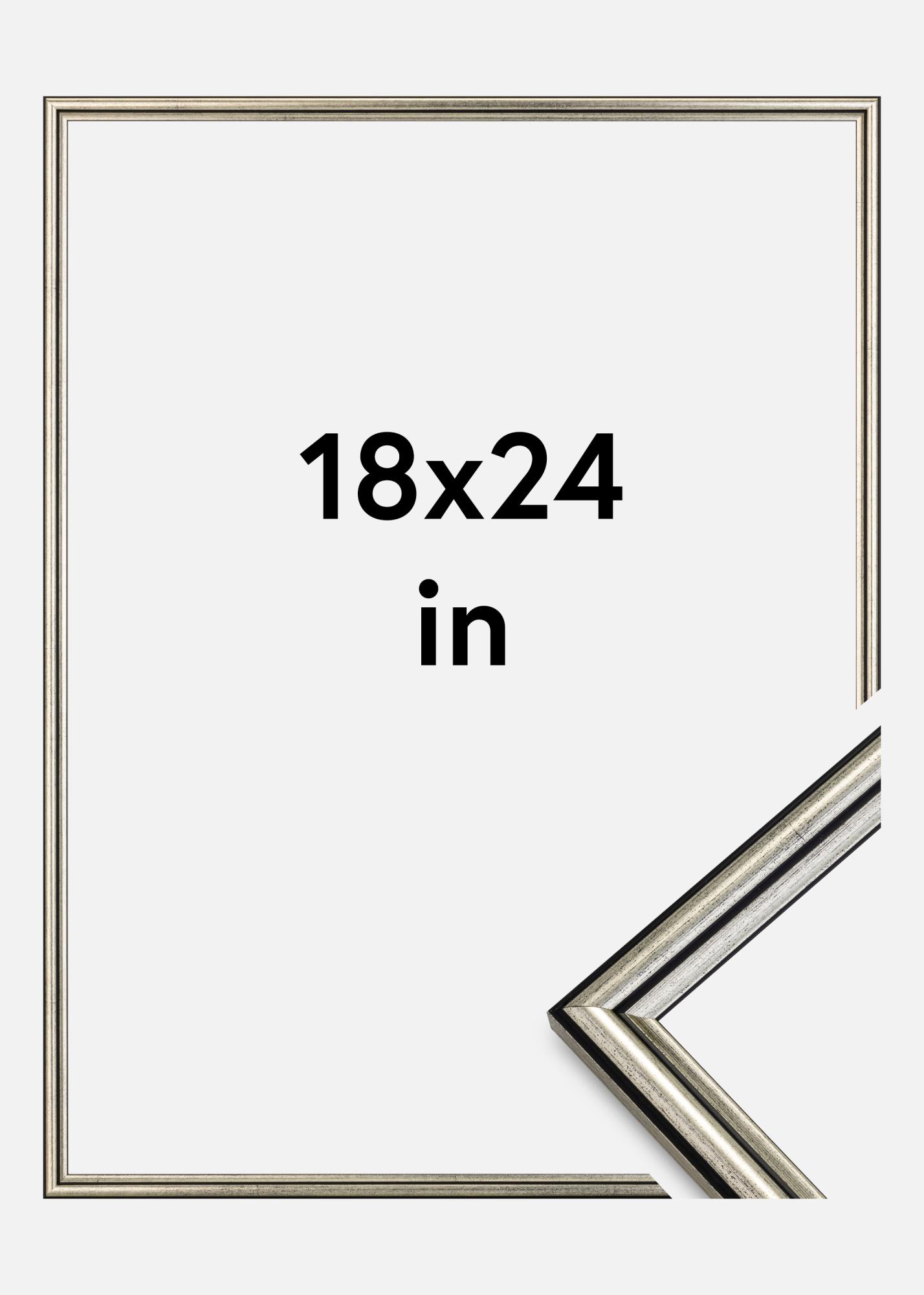 Dê às suas paredes um toque de elegância com esta moldura prateada de 18x24 polegadas, cujo design é refinado com detalhes manchados de preto e linhas pretas que adicionam profundidade e caráter. Esta moldura não é apenas uma elegante moldura para suas fotos, mas também uma obra de arte em si.