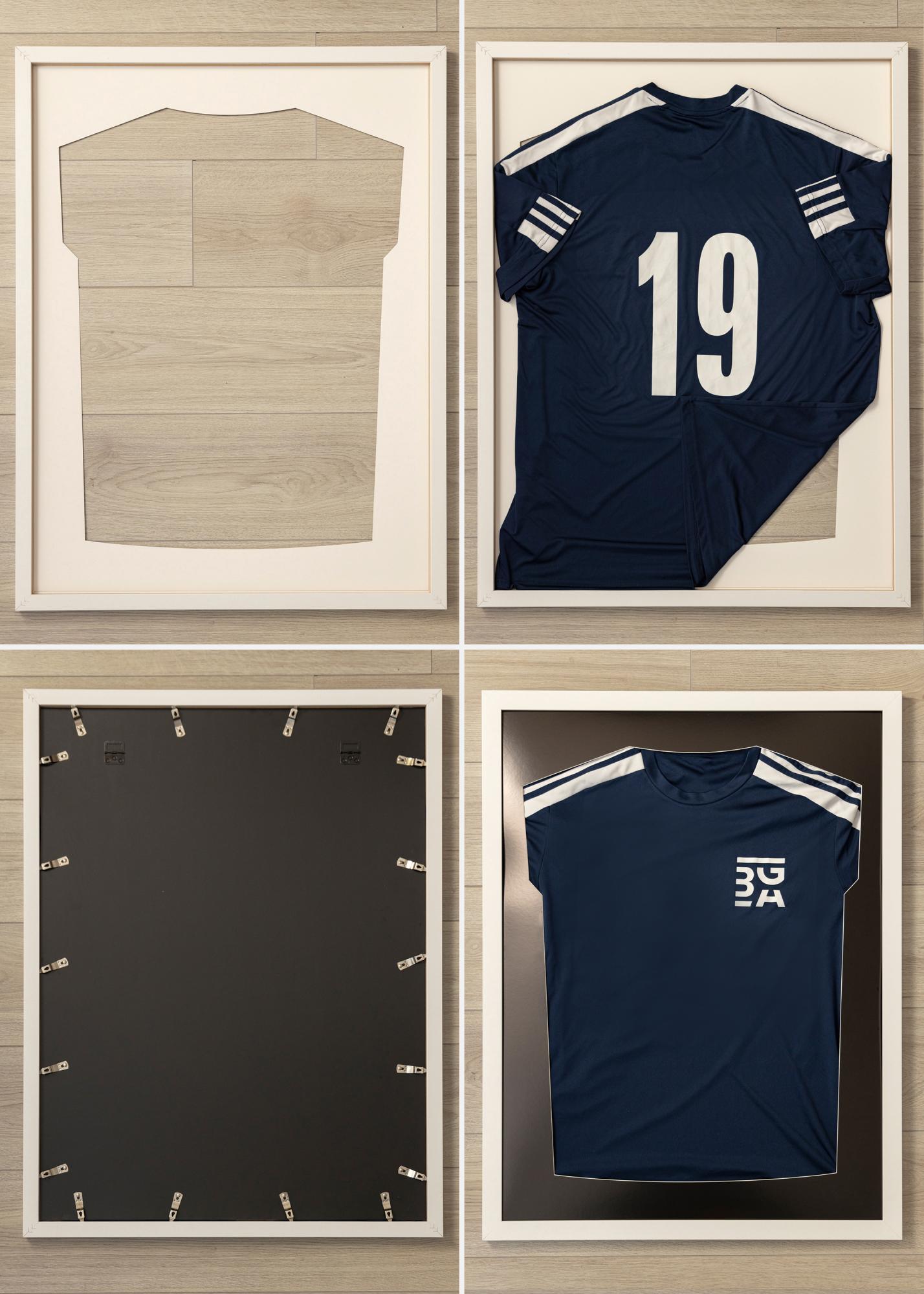 Uma camisola de desporto emoldurada chama a atenção e preserva as suas recordações por muito tempo, para que possa continuar a desfrutar delas todos os dias.