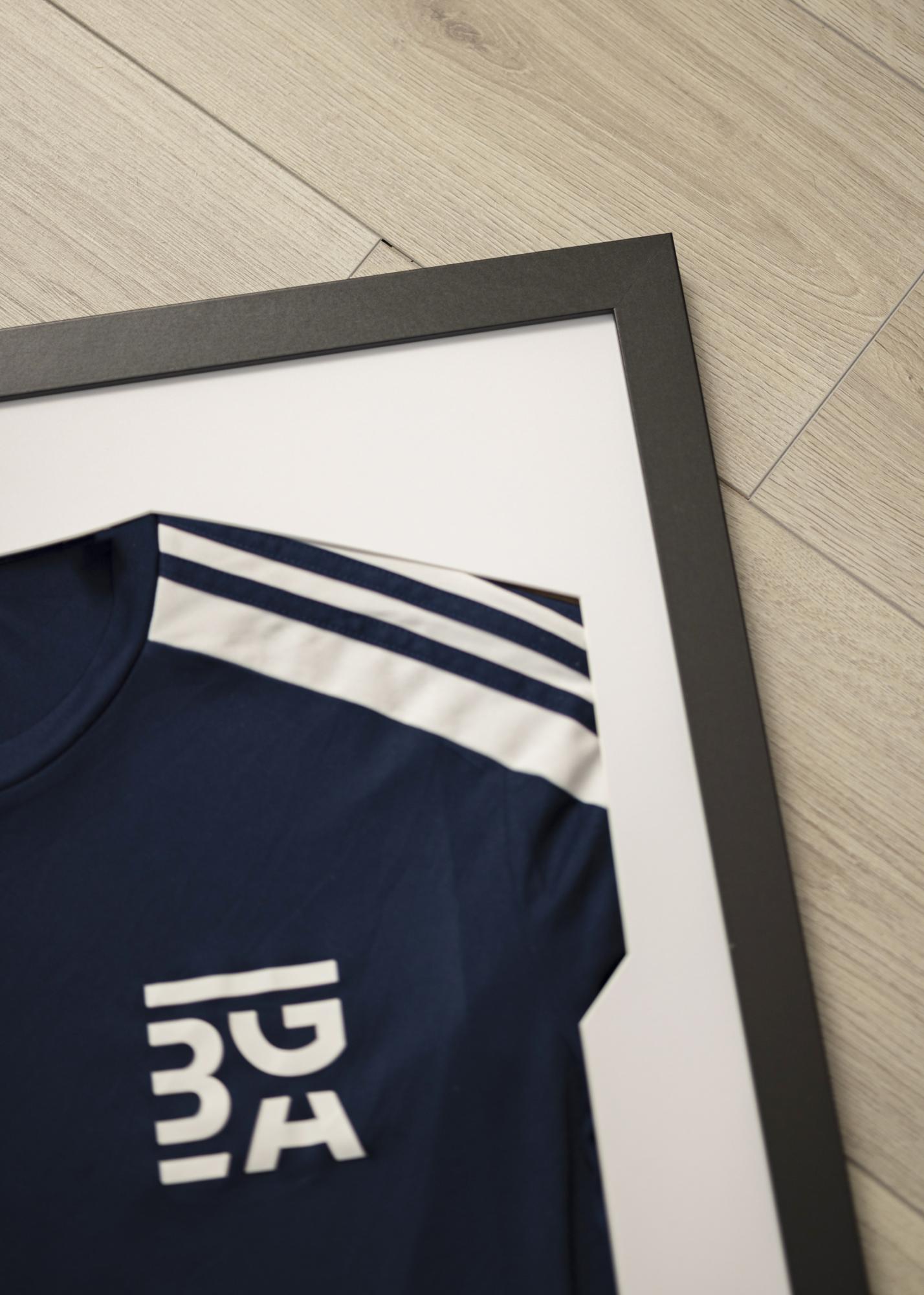 Uma camisola de futebol emoldurada da sua equipa favorita torna-se uma peça de decoração elegante, da qual poderá desfrutar todos os dias.