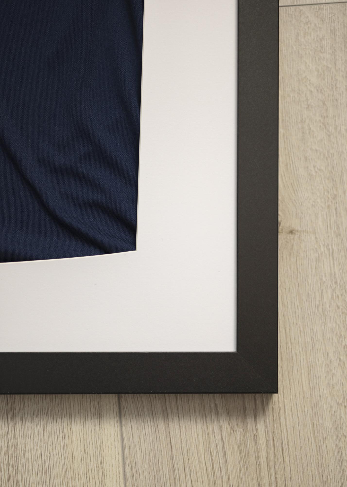 Uma moldura preta e um fundo branco são a forma perfeita para destacar as cores da camisola da equipa do seu coração. Ou porque não emoldurar outras recordações, como as primeiras roupas das crianças ou uma blusa do seu artista preferido?